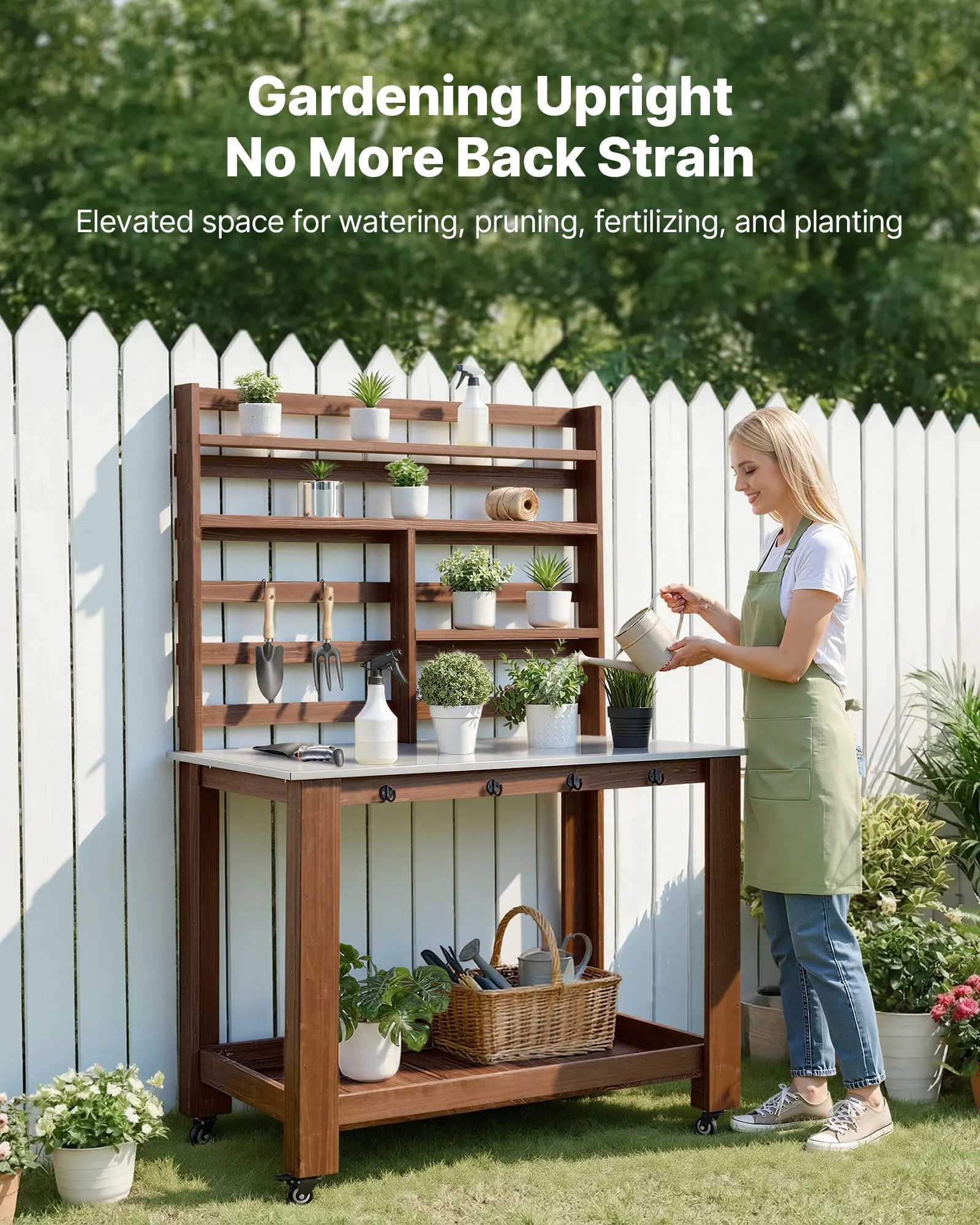 Upright Gardening Work: This raised potting bench provides an elevated workspace for watering, pruning, fertilizing, and planting. It allows you to stand upright without bending, reducing back strain