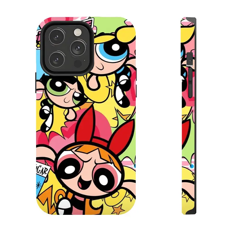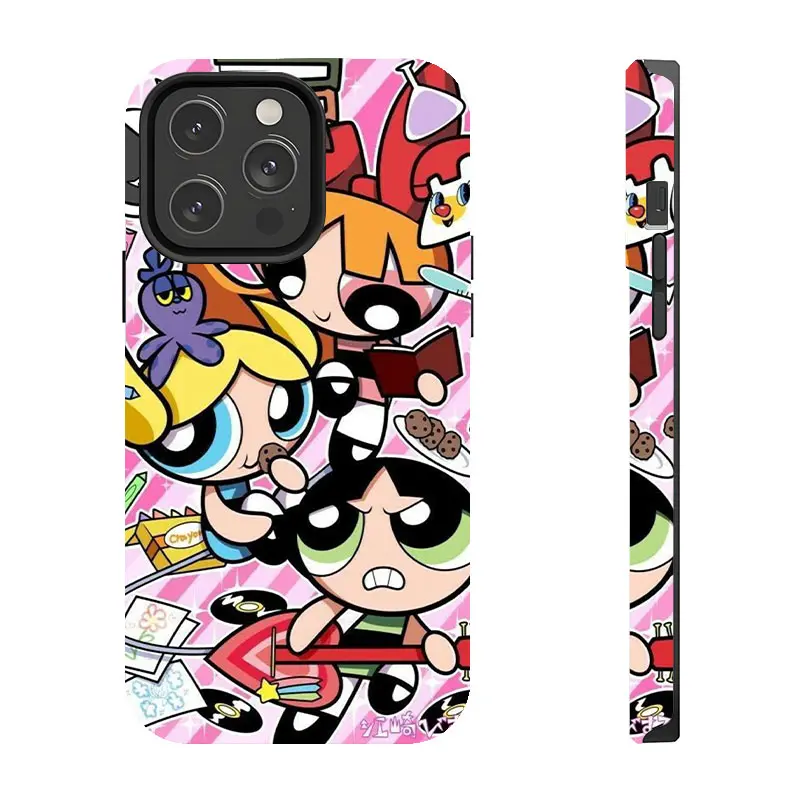5. Kawaii Powerpuffs Anime Girls Film Shell Painting Cute Phone Cases Suitable for iPhone 17-11 Pro Max/Plus and Samsung Galaxy S23-25