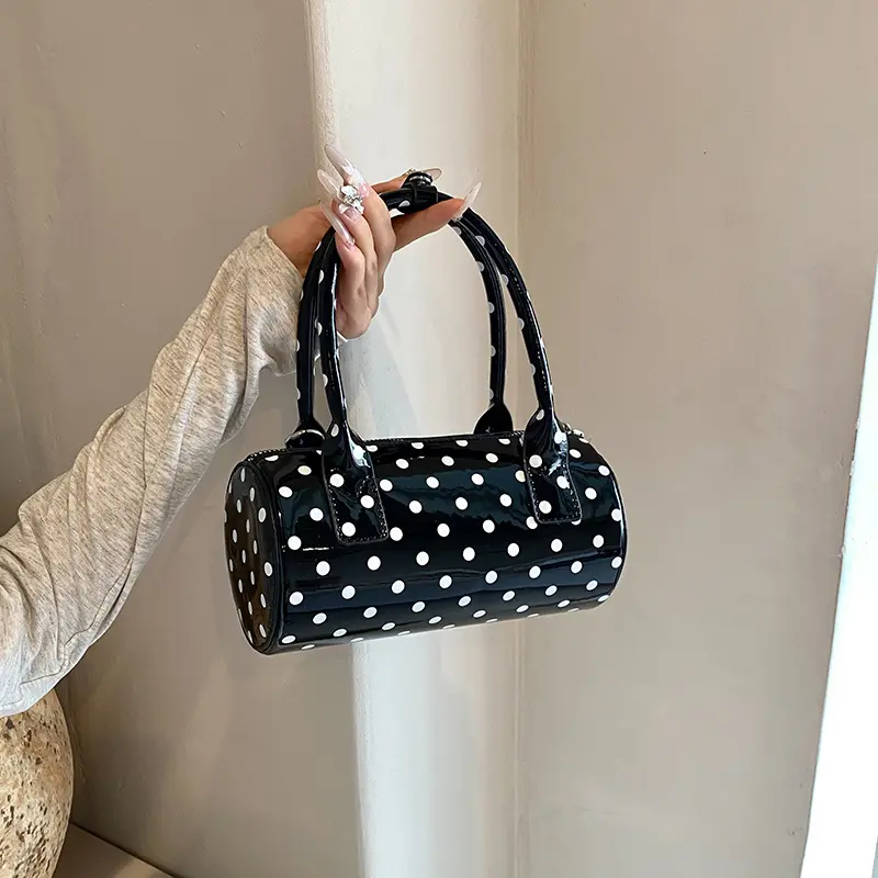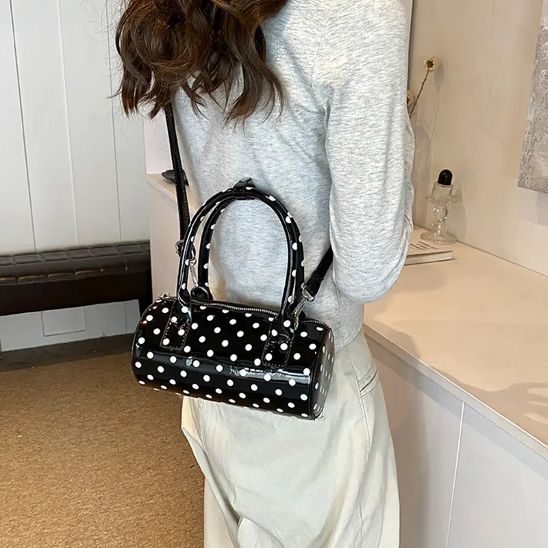 Crossbody Bag for Women Barrel Shape Mini Top Handle Purse PU Leather Polka Dot Cute Handbag Adjustable Strap Daily Use
