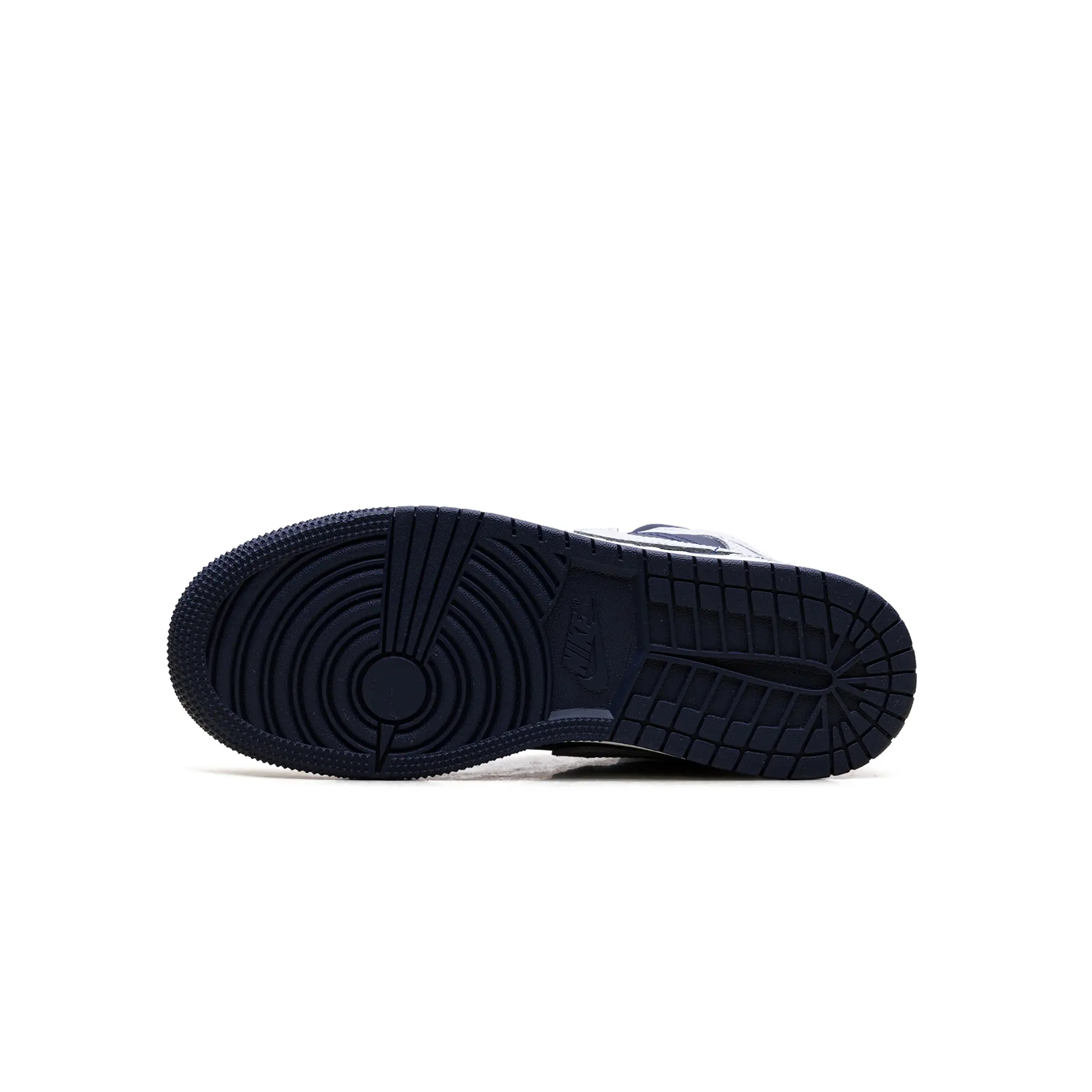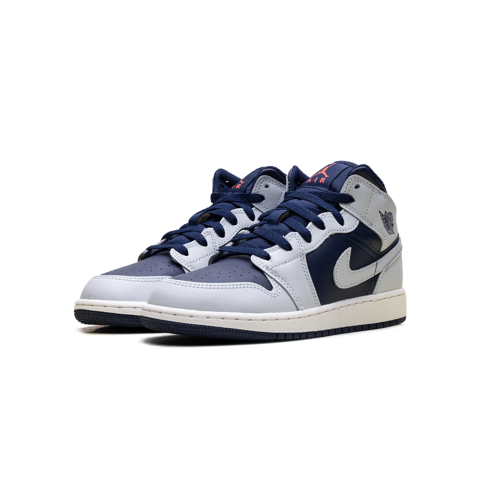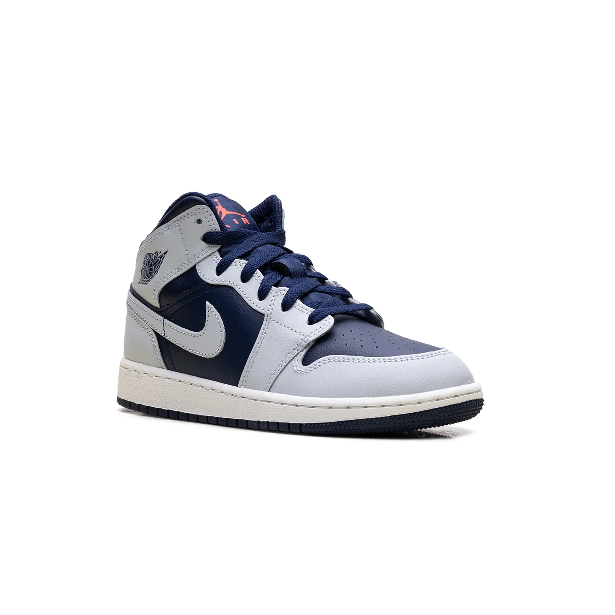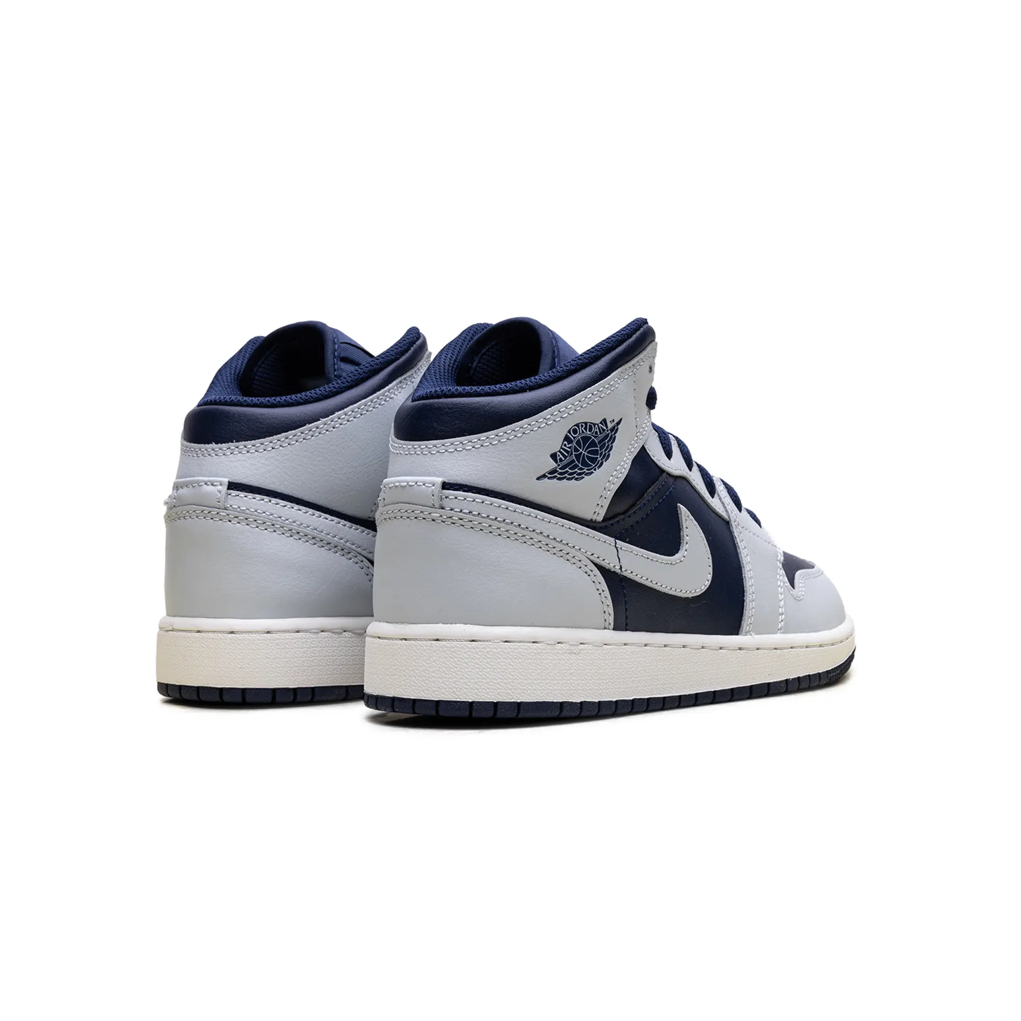 The Air Jordan 1 Mid GS "Grey / Obsidian" delivers a clinical, high-status execution of the 1985 hardwood icon, masterfully blending "Georgetown-adjacent" heritage with a radical, contemporary technicality. This Grade School exclusive features a premium landscape of smooth "Obsidian" navy leather and structural cool grey overlays, providing a muted, multi-dimensional foundation for the model’s iconic anatomical profile. The design is defined by its artisanal strike, utilizing a specialized grey leather Swoosh and debossed Wings branding that injects a layer of high-octane luxury into the deconstructed court build. Grounded by a vintage-inspired "Sail" midsole for elite aesthetic depth and finished with a navy rubber outsole for superior multi-surface grip, this release successfully pairs the AJ1’s aggressive DNA with a sophisticated, "Collegiate-Vapor-Elite" aesthetic.