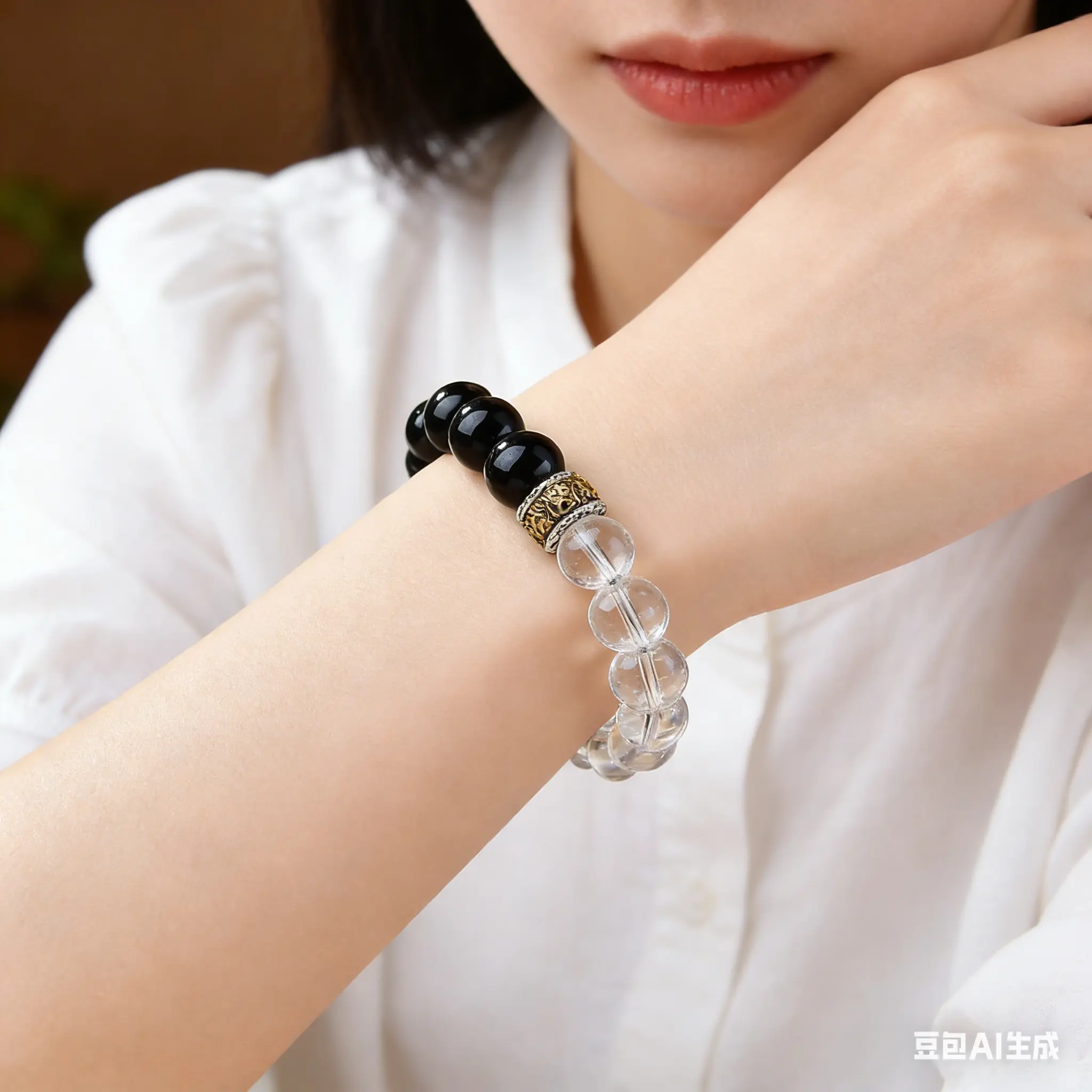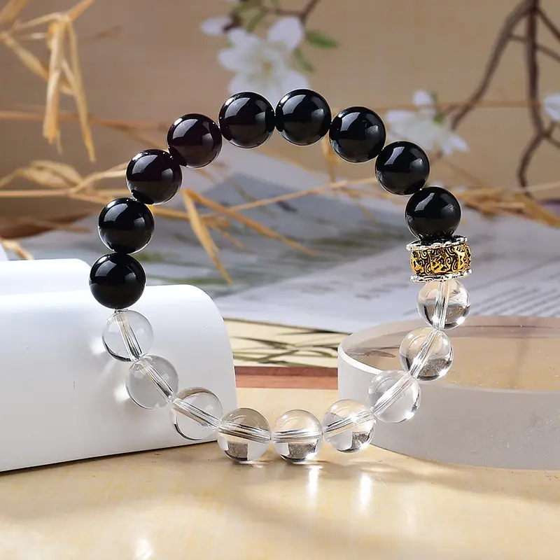 White Crystal Black Tourmaline | Protection Bracelet, Grounding & Positive Energy
