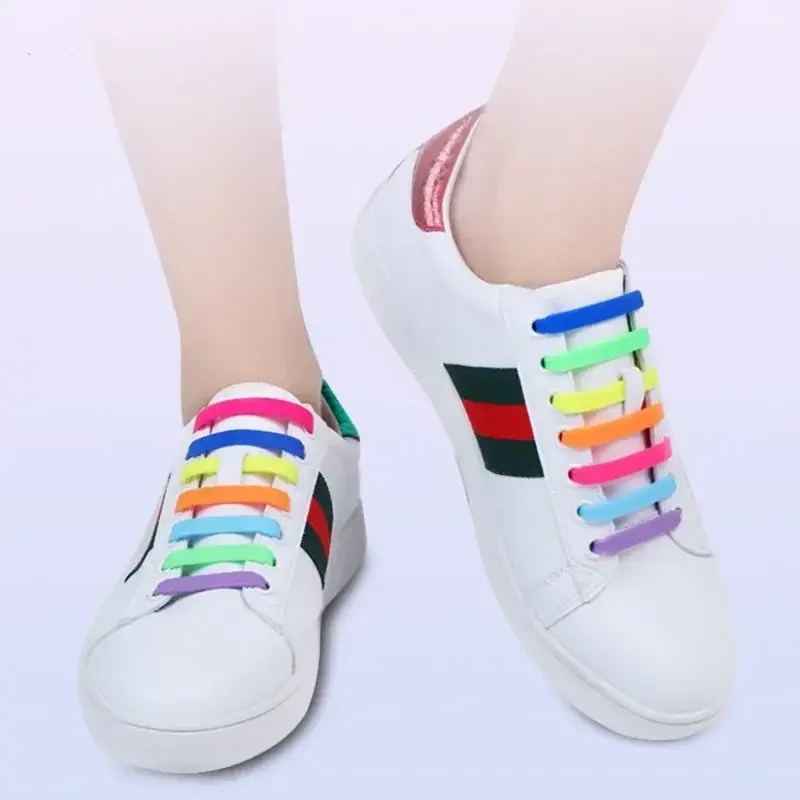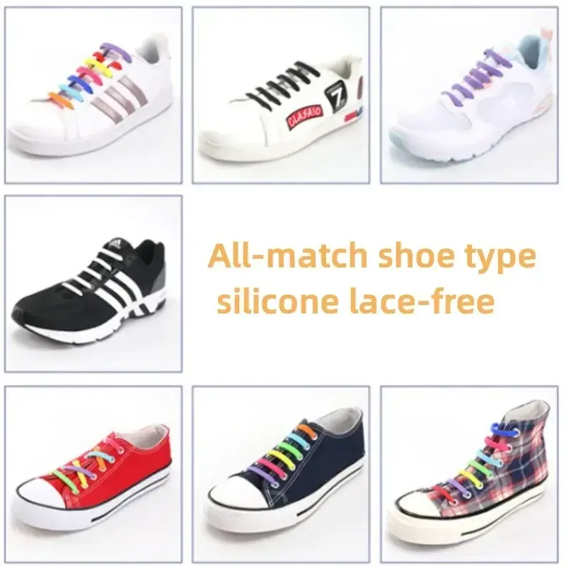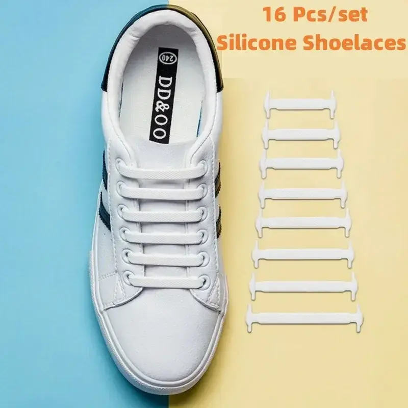 16Pcs Elastic Shoe Laces All Sneakers Silicone Stretch Shoelaces Unisex Fashion No Tie Shoelace Rubber Band Shoelaces NONE