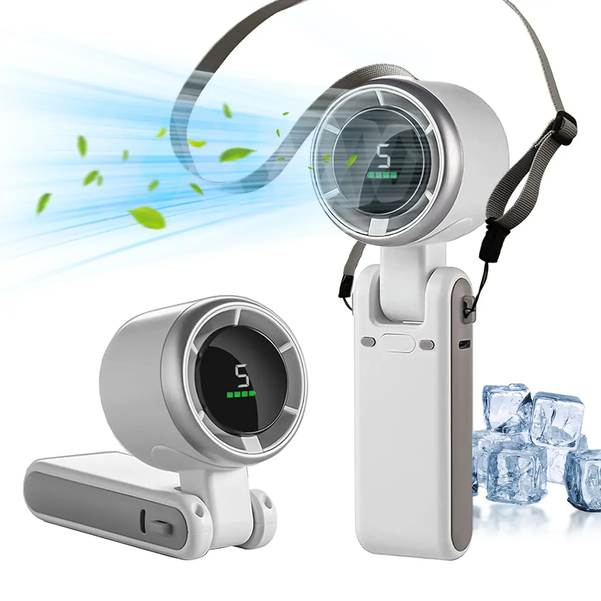 Portable Handheld Mini Turbo Fan USB Rechargeable Pocket Fan With LED Display 3 IN 1 Foldable Personal Cooling Fan for Travel Home Office
