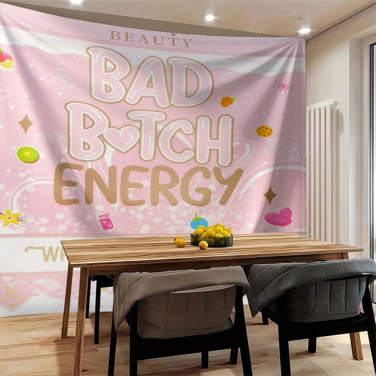 5. Y2K Bad B*tch Energy Tapestry, Cute Print Wall Hanging Tapestries, Sweet & Cool Style Backdrop Decor, Soft Colorful Wall Blanket for Bedroom Dorm Living Room, Perfect Gift