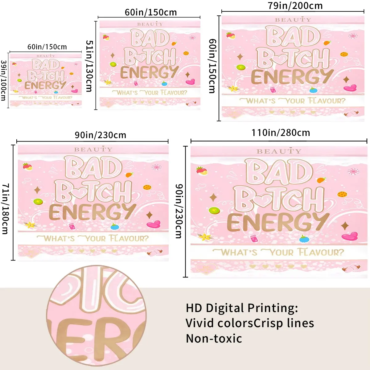 Y2K Bad B*tch Energy Tapestry, Cute Print Wall Hanging Tapestries, Sweet & Cool Style Backdrop Decor, Soft Colorful Wall Blanket for Bedroom Dorm Living Room, Perfect Gift