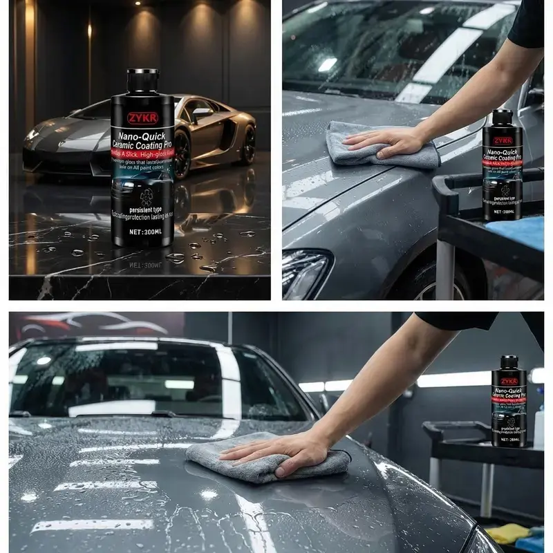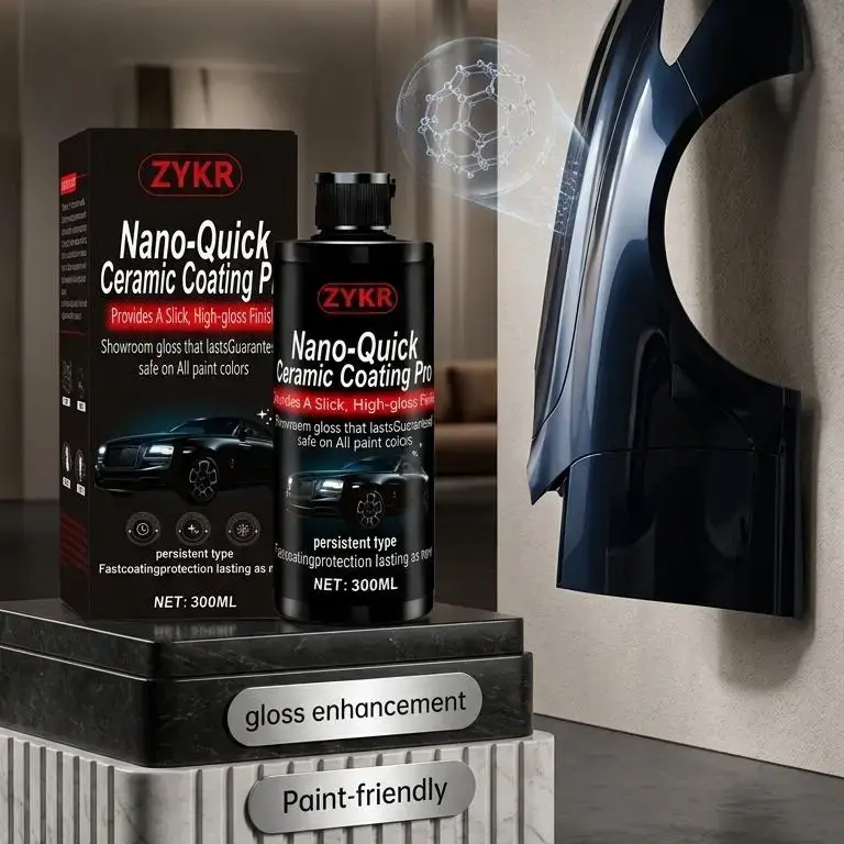 ZYKR Nano-Ceramic Coating Products Advanced Ceramic Technology The ZYKR Nano-Quick ceramic coating products are specially designed for automobiles. It employs advanced ceramic technology to achieve a dust-proof glass-like effect. This coating features a long-lasting luster and can enhance the appearance of your vehicle. It is highly suitable for users who are looking for a protective and stylish coating solution. Key Features Dust-proof glass effect: Keeps your car glass clean and bright. Long-lasting luster: Maintains a shiny appearance even after long-term use. 300 milliliters: Provides sufficient coating coverage for your vehicle. Perfect for vehicle use This ceramic coating is specifically designed for cars. It has protective functions and can enhance the appearance of the vehicle. It is ideal for car owners who wish to improve the appearance of their vehicles and enhance their protection performance.