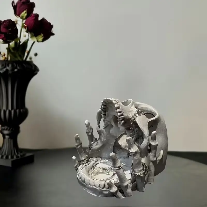 Gothic Skull Jewelry Organizer Box, Halloween Decor with Compartments, Necklace Hooks, Lined Interior, Resin Desktop Storage, Artistic Home Décor