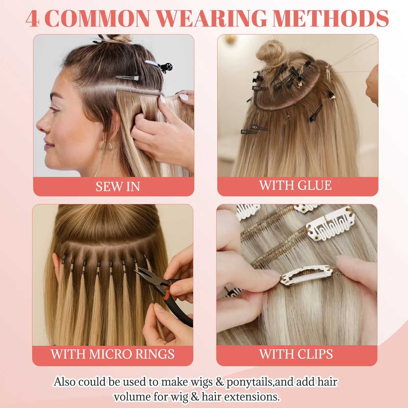 【Various Wearing Methods】-- Weft hair extensions human hair easy to apply, various apply methods meets your different demands: like sew in to your hair directly, glue-in , clip ins , micro-link , micro-beaded etc. One time install, long lasting hairstyle. Single bundle for sale. More reasonable grams in affordable price. (12" /14"): 80G/Bundle; ( 16" /18" /20" ):