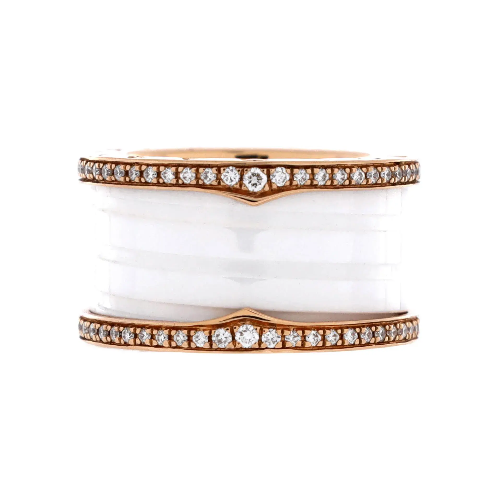Pre-owned Bvlgari B.Zero1 Three Band Ring 18K Rose Gold and Ceramic with Diamonds by Rebag