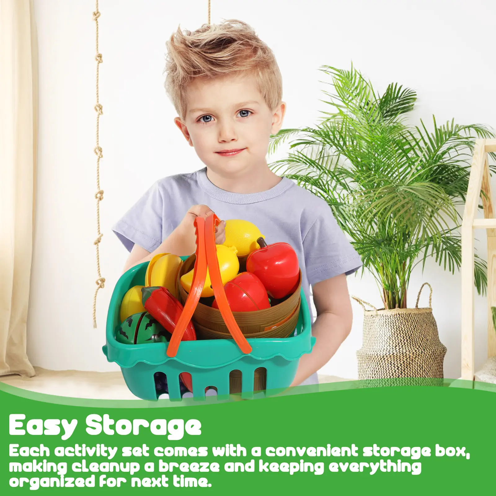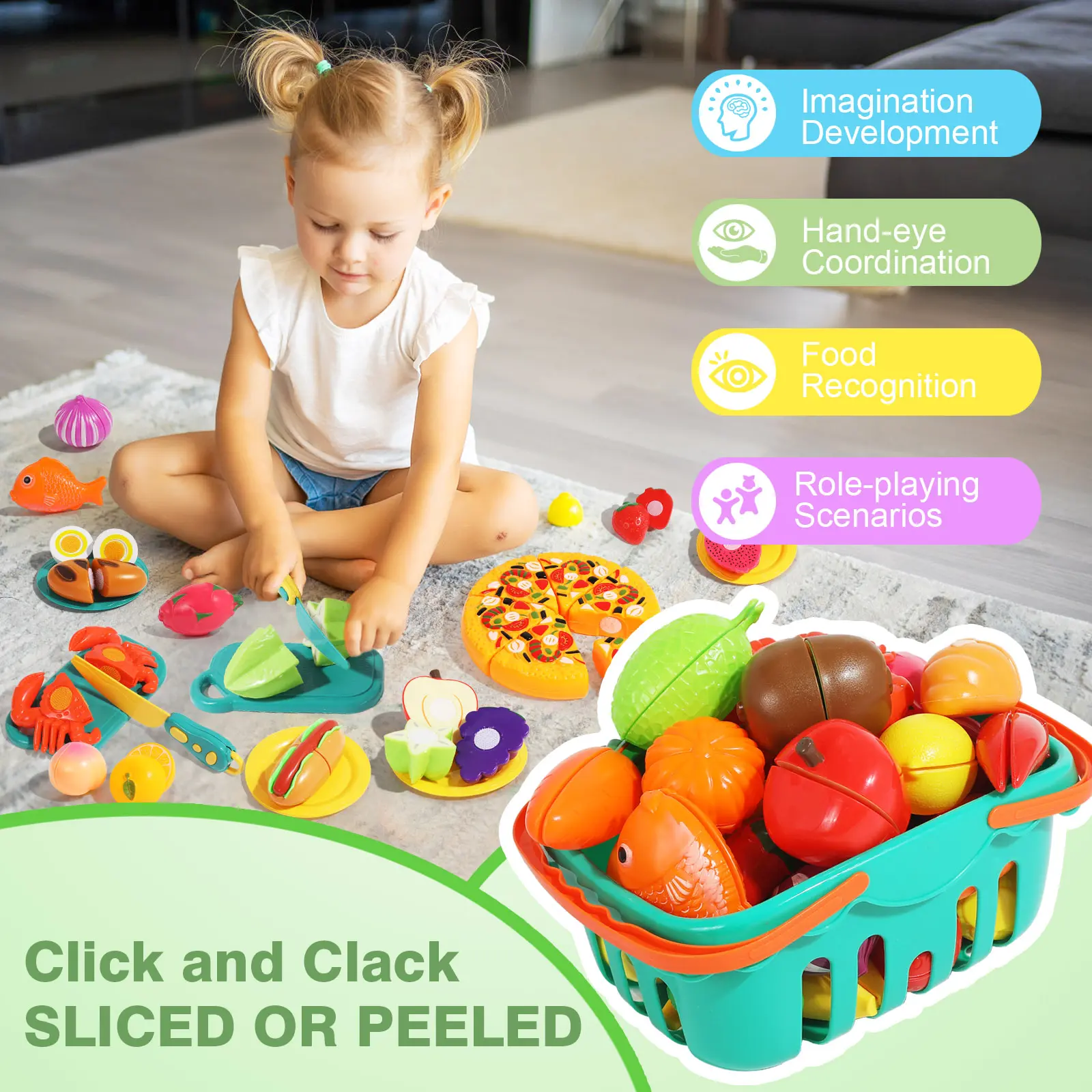 100 Pcs Play Food Set for Kids Kitchen, Pretend Food Toy for Toddlers Age 1-3, Plastics Cutting Fake Food/ Fruit/ Vegetable Accessories with 2 Baskets, Birthday Gifts for 2 3 4 5 Years Old Boys Girls