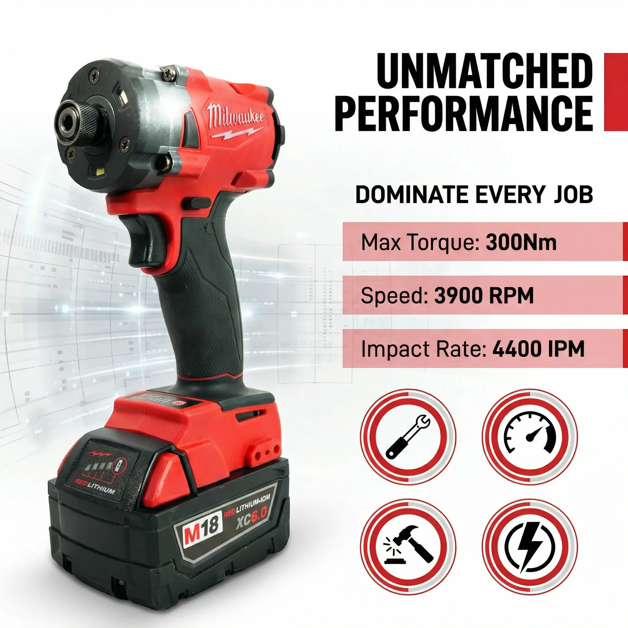 Milwaukee M18 FID3 Brushless Impact Driver Kit With Battery Charger for Mechanical Repair Cordless Drill High Torque