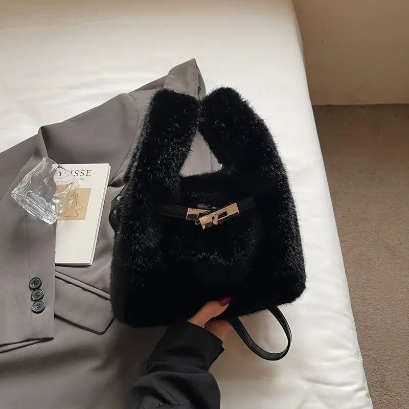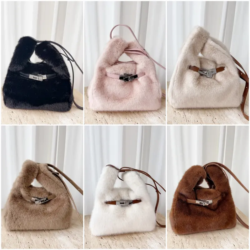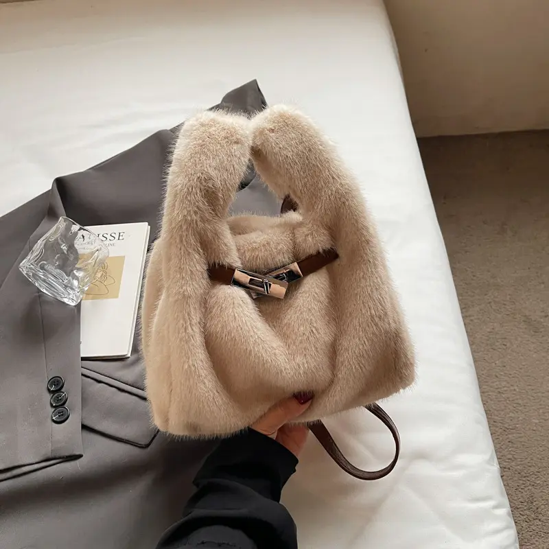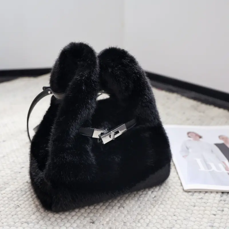 New Winter Faux Fur Top Handle Bag Korean Fashion Crossbody Bucket Bag for Women Comfortable and Versatile Texture Shoudler Bag
