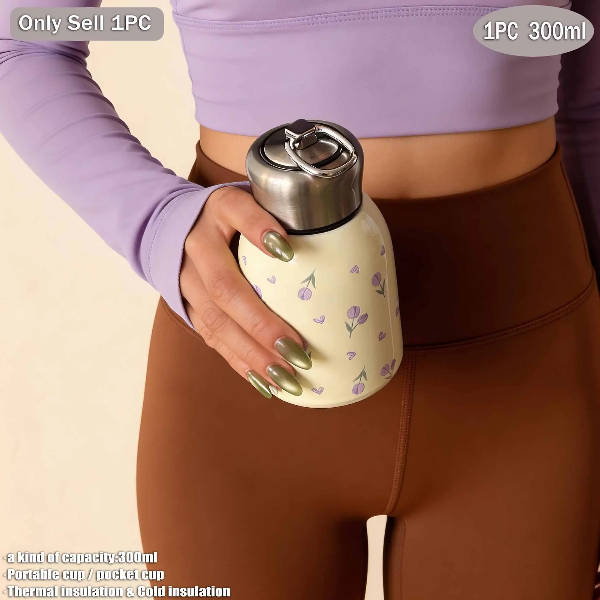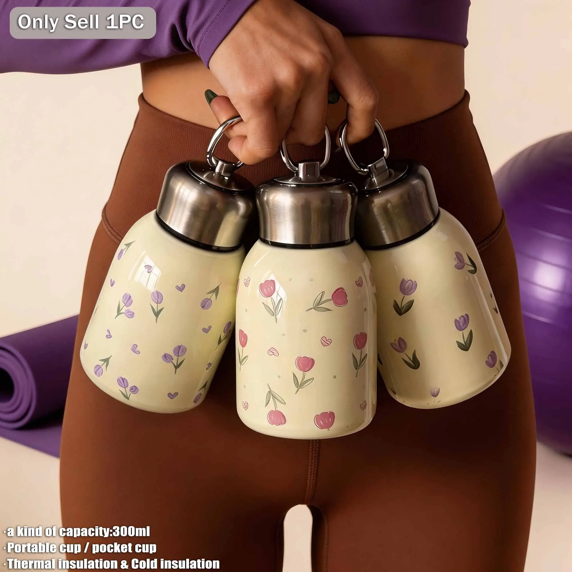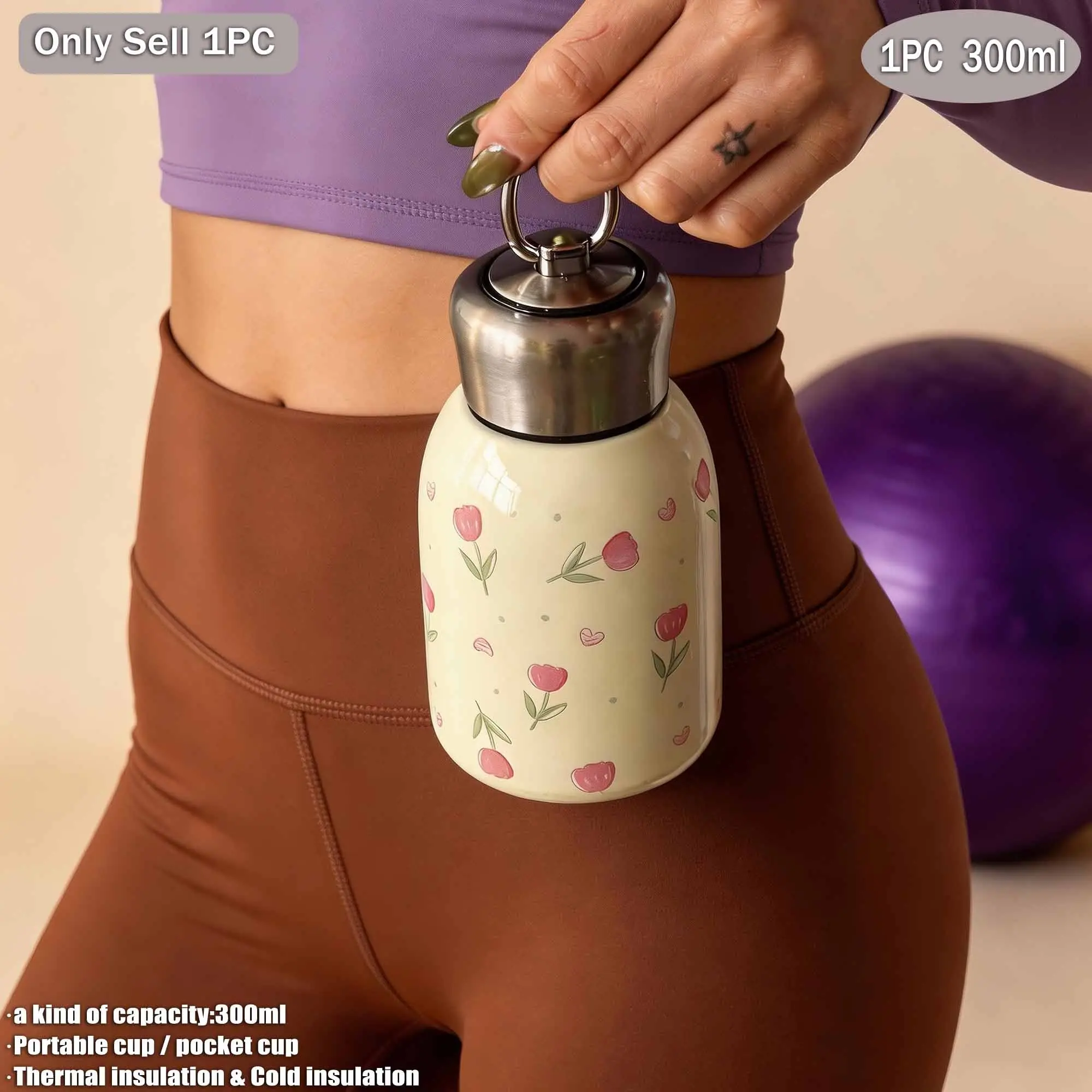 300ML Tulip Theme Dual-Layer Stainless Steel Insulated Cup, Pocket Cup, Travel Mug, Outdoor Water Bottle, Gift for All Occasions