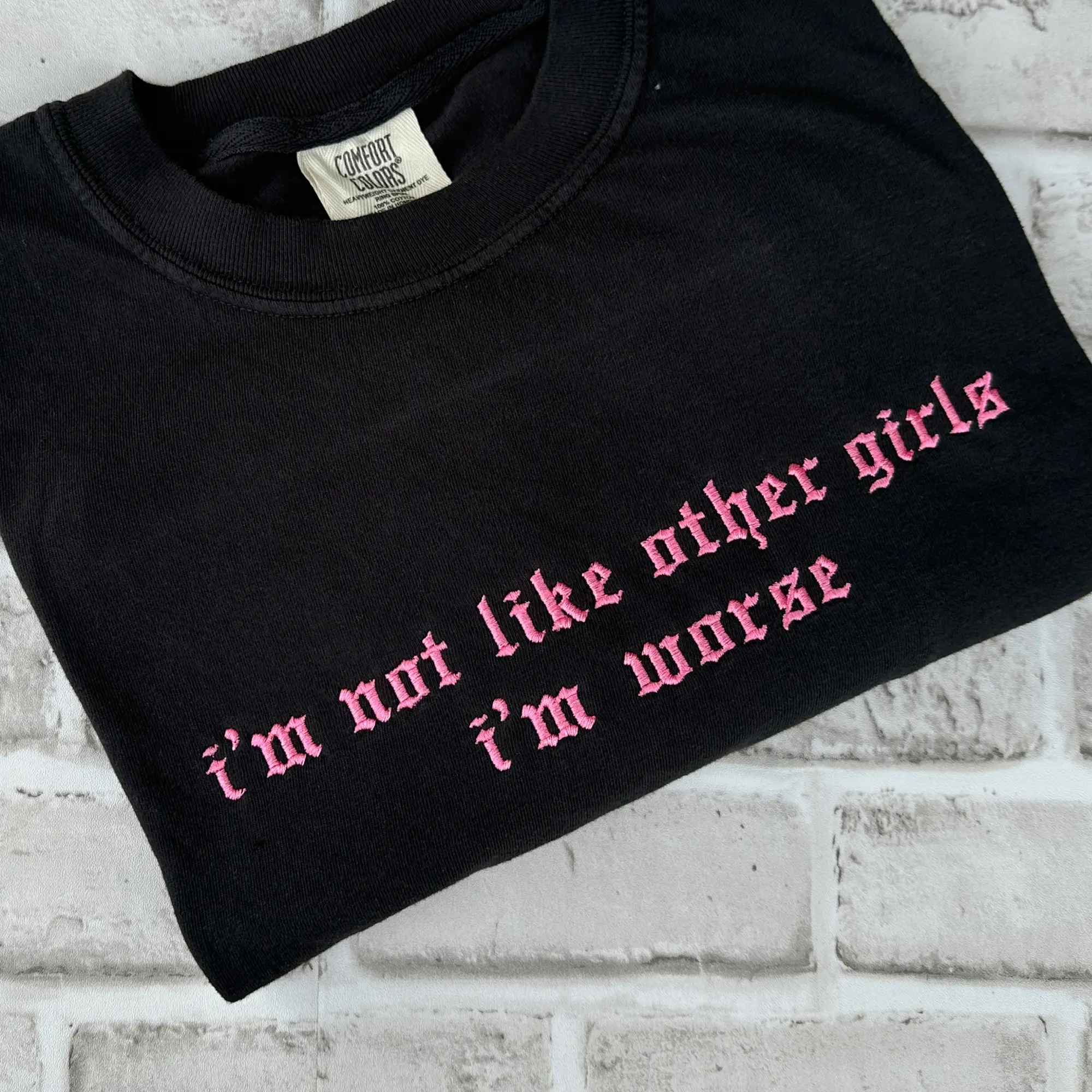 ( T-shirt ) I'm Not Like Other Girls I'm Worse - Embroidered Comfort Color TEE, Alt Fashion, Alternative, Shirt For Gamer