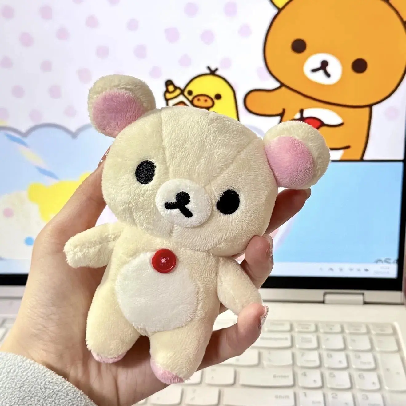 12cm Kawaii Rilakkuma Korilakkuma Plush Toy Keychain Kawaii Brown White Bear Stuffed Bag Charm Cute Birthday Gifts Girl
