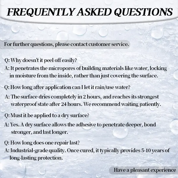 This waterproof sealant easily penetrates cracks, gaps, and leaks, forming a strong waterproof barrier. It perfectly adheres to uneven surfaces with extremely strong adhesion, eliminating worries about water seepage.