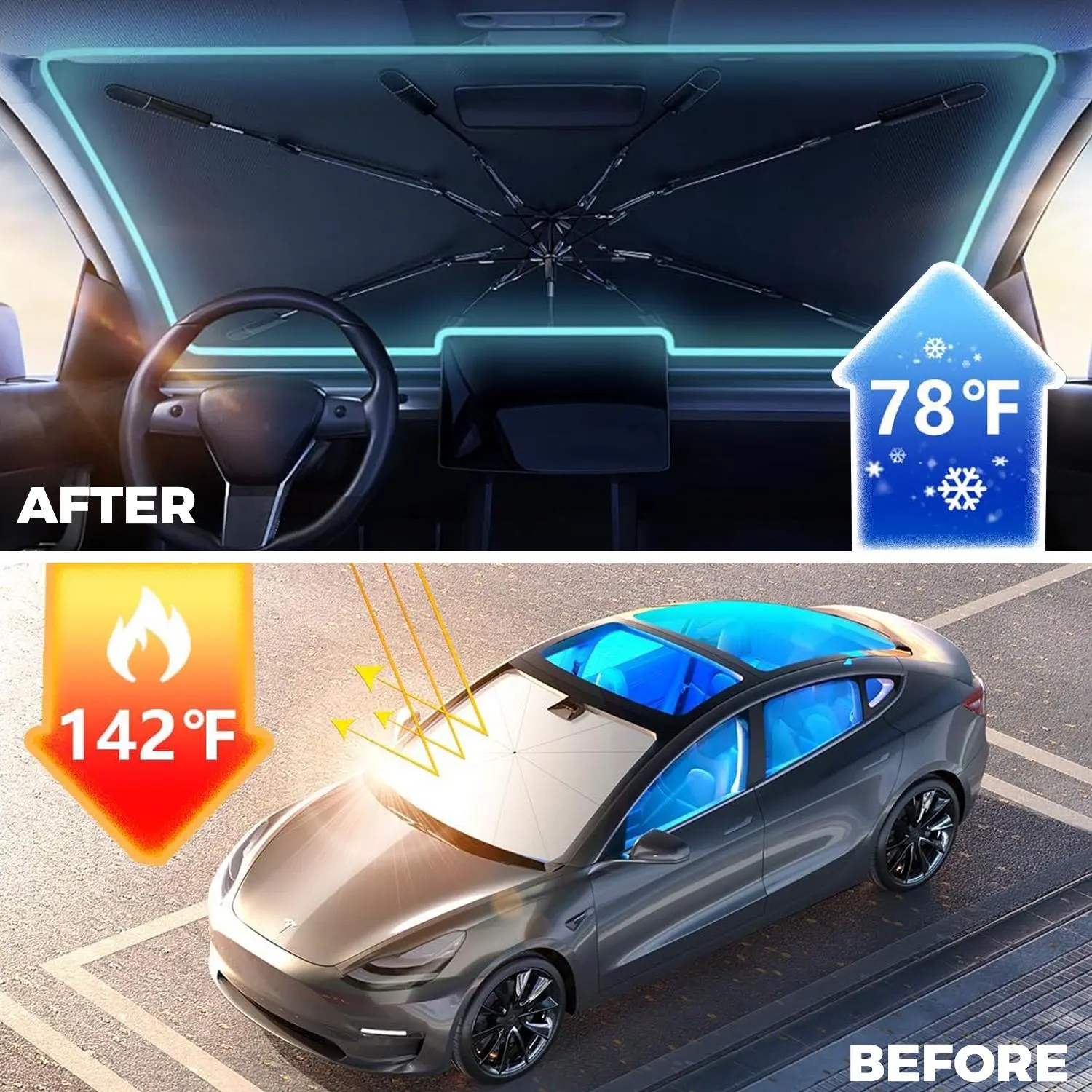 【Foldable and Portable】:Designed with portability in mind, this foldable sunshade is easy to transport and store, making it an essential travel companion for safeguarding your car during road trips.