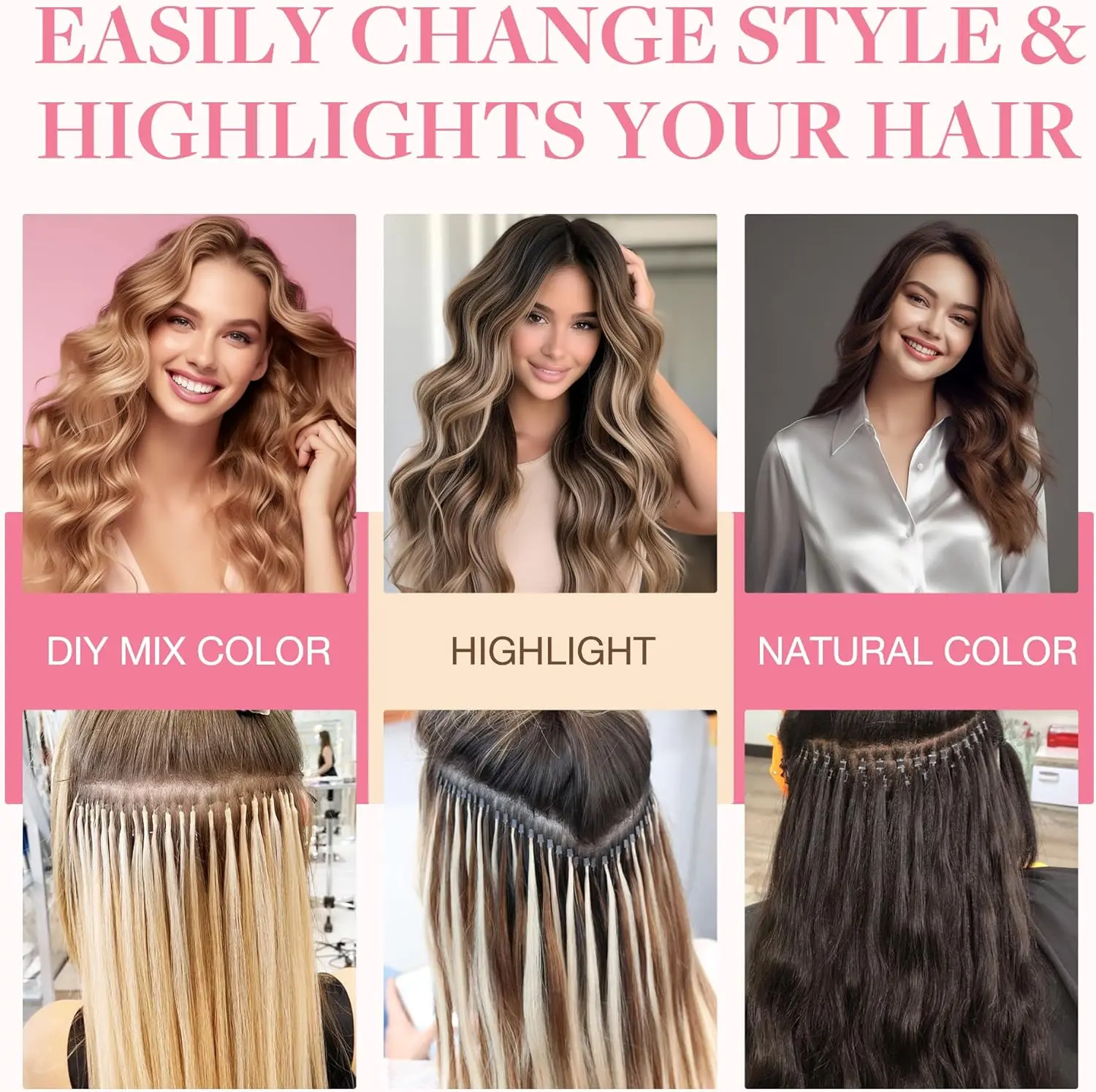 These standard I-Tip hair extensions are suitable for professional operation by salon hairstylists, and also perfect for home DIY installation by experienced users. The installation process is simple and convenient, you can get a salon-grade hairstyle at home without frequent salon visits, saving your time and money.