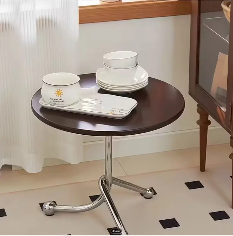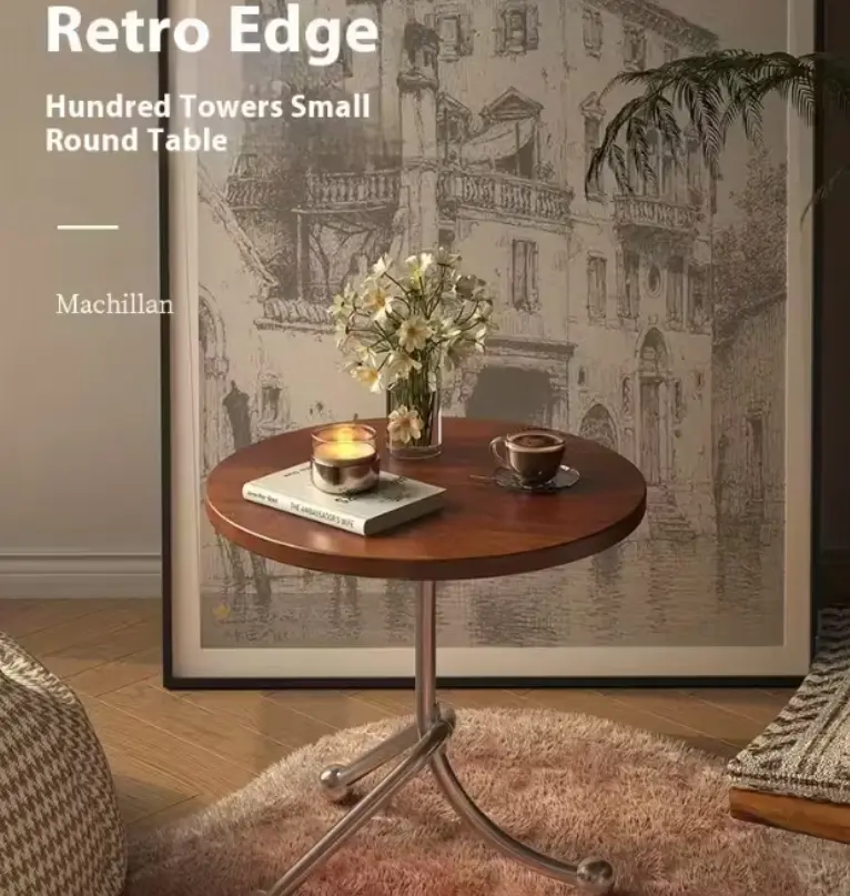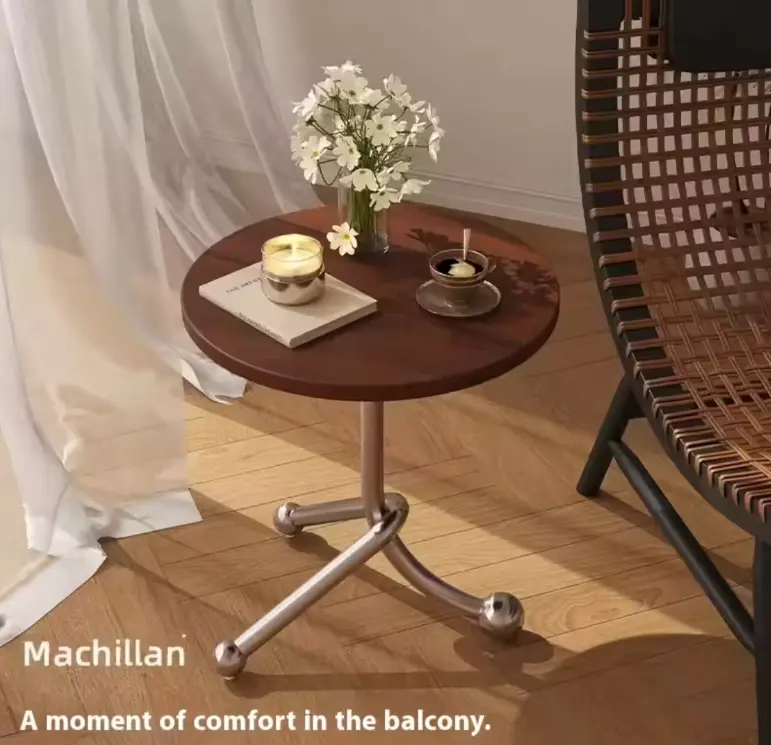 Middle ancient style stainless steel living room small round table coffee shop milk tea shop creative small table balcony casual small tea table