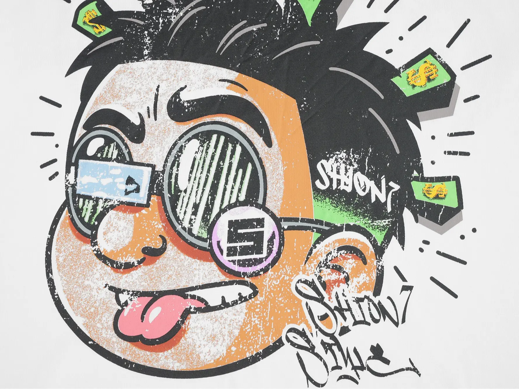100% Cotton Tee, Rhinestones Casual Over-sized Money Cartoon Graphic T-Shirt Men Streetwear Hip Hop Top