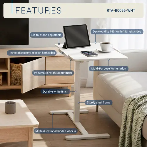 Features a smooth, scratch-resistant white finish that withstands daily use. Wipes clean in seconds for a neat appearance. Built-in quiet caster wheels let you move your workspace effortlessly. Stable locking support when stationary.
