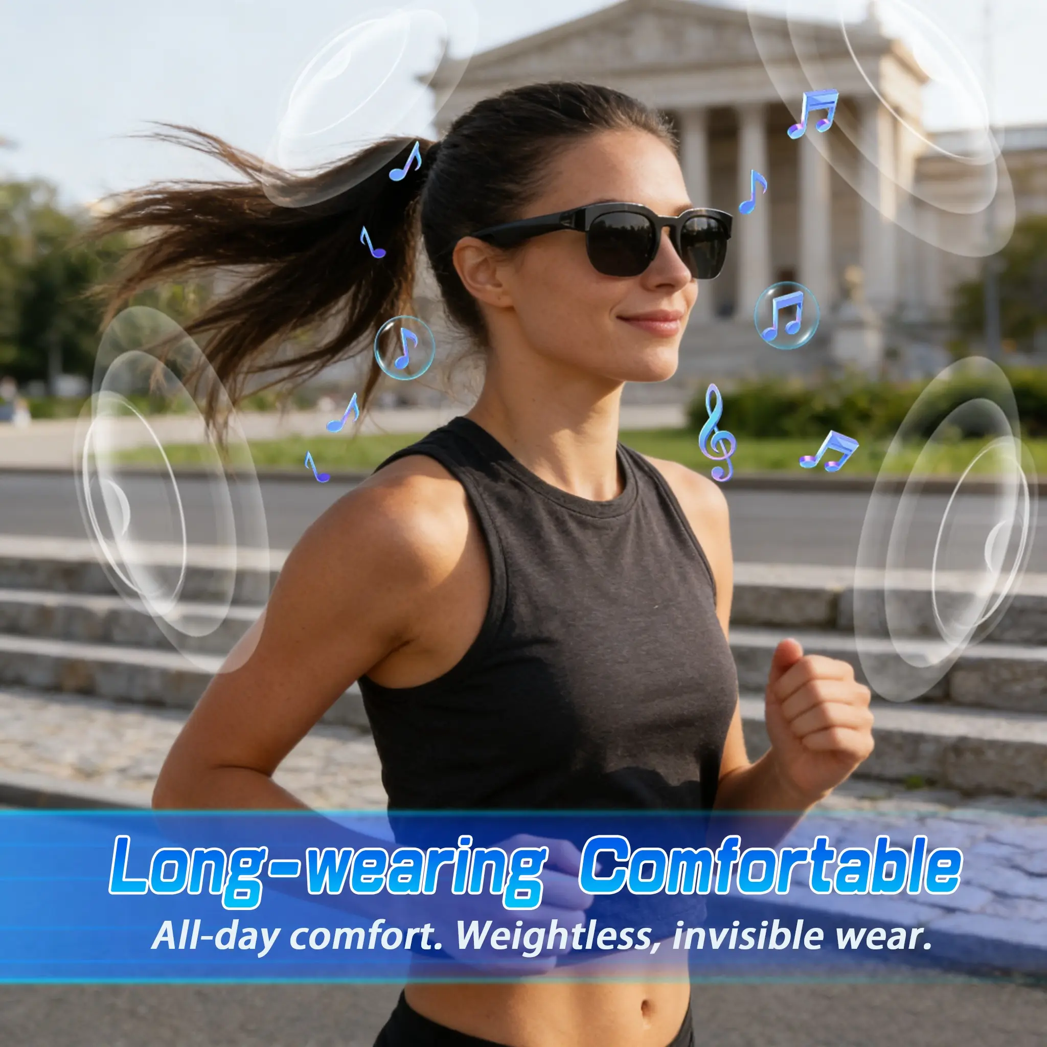 Smart Bluetooth Glasses,Built in Mic & Speakers,Smart Wireless Headphone Sunglasses/Blue Light for Men and Women,Athletic/Outdoor UV Protection,Touch & Voice Control,Unisex