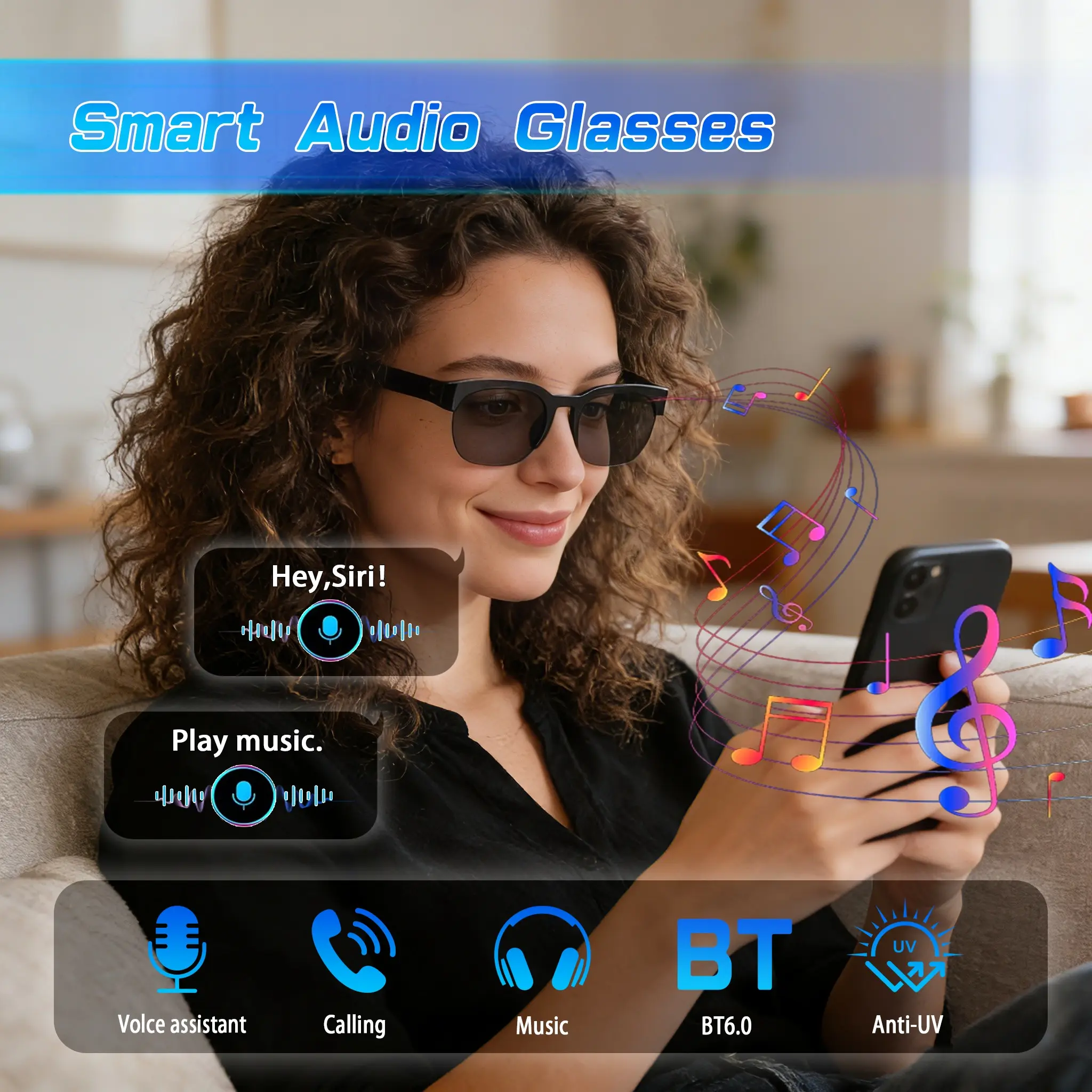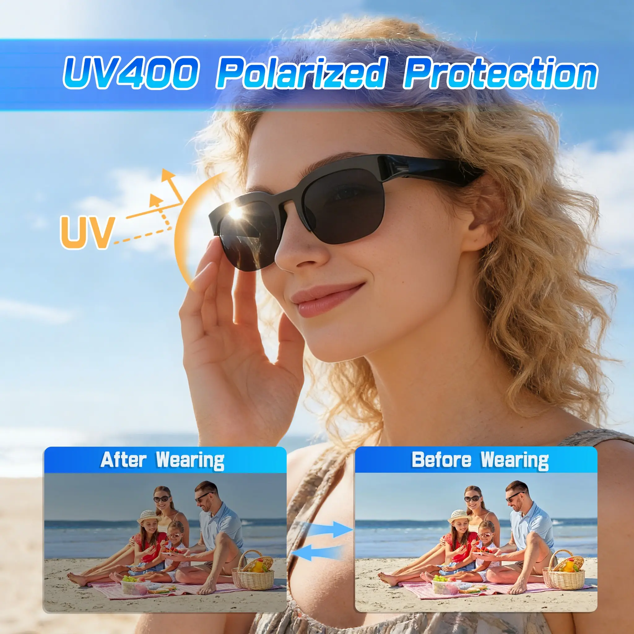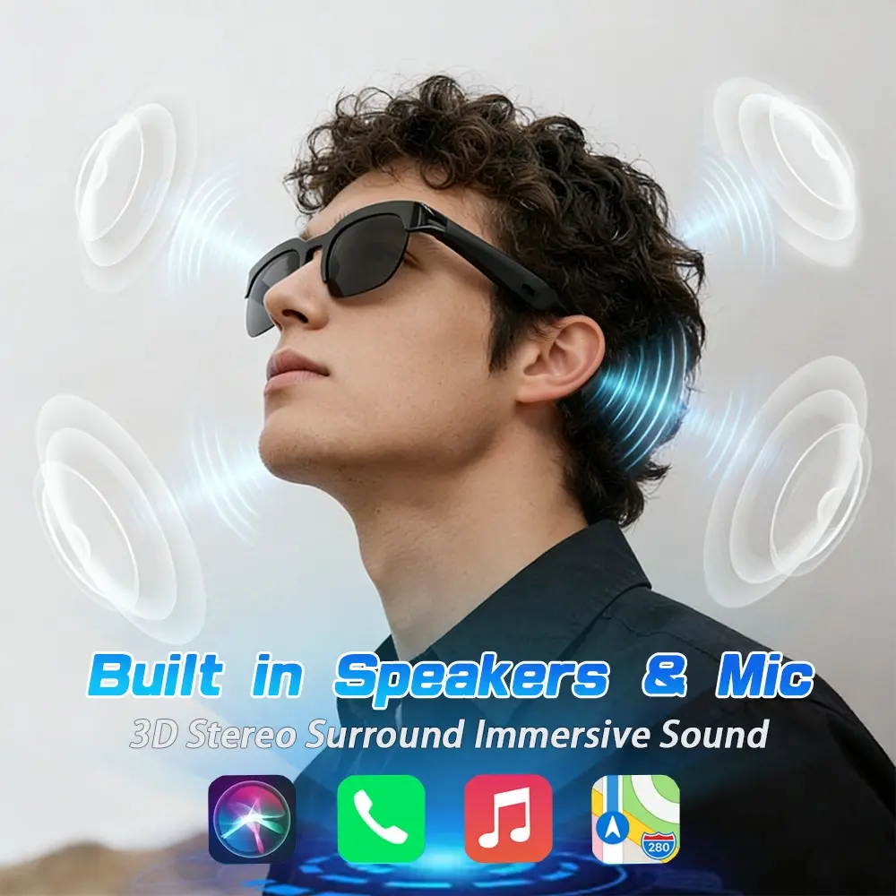 Smart Glasses,Polarized Bluetooth Sunglasses with Mic & Speaker,Voice Control,Music & Hands-Free Calling,UV Protection