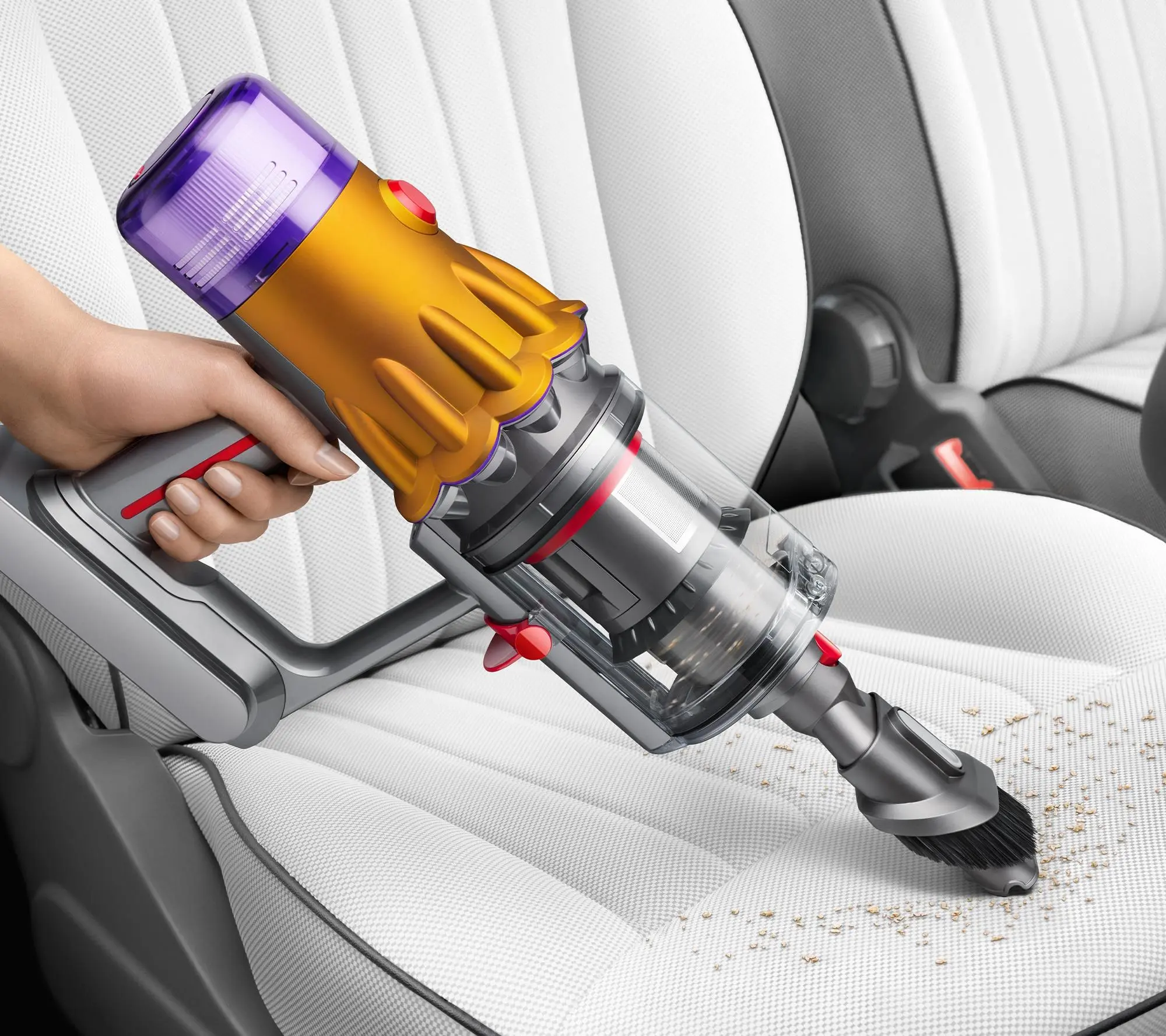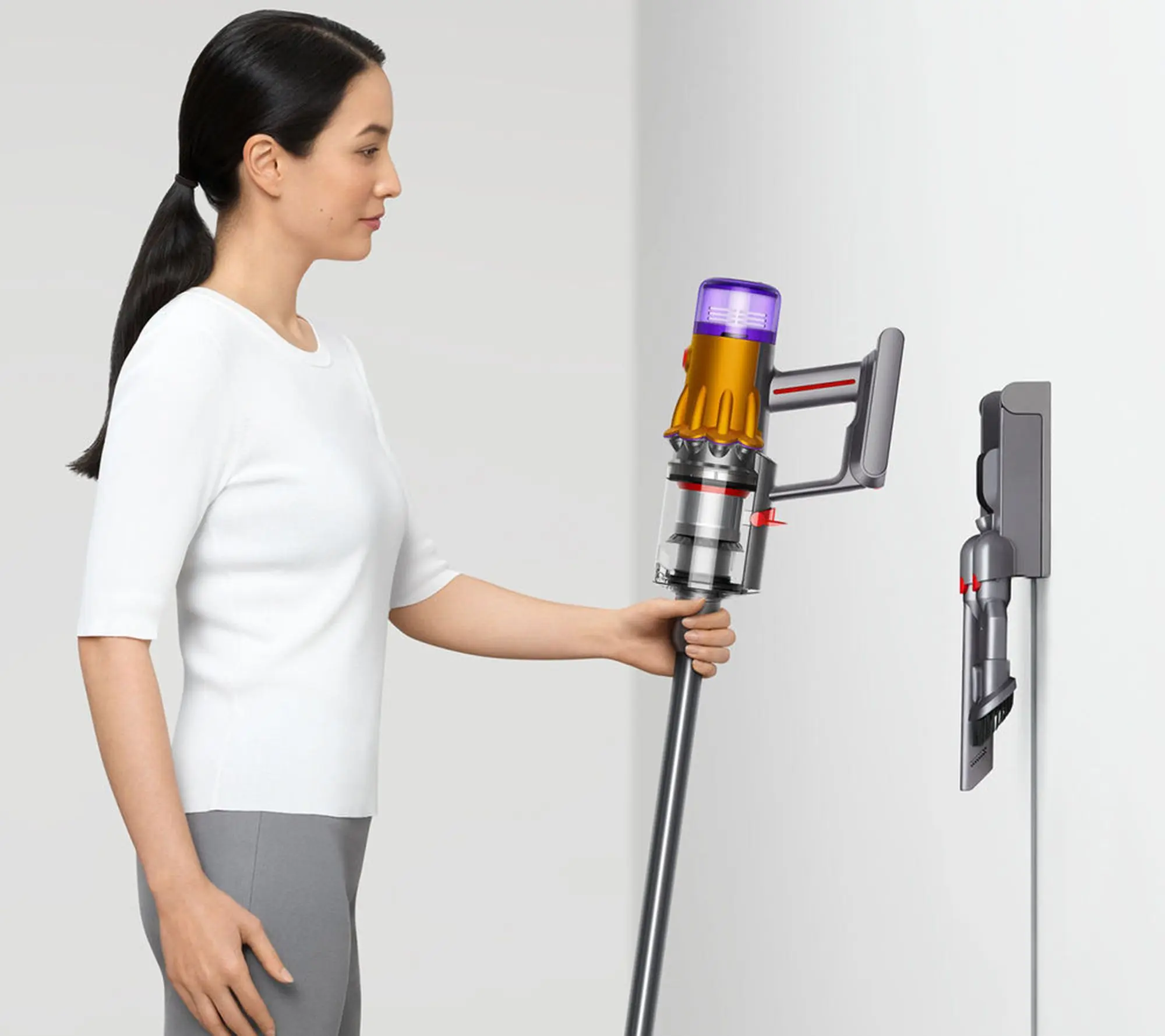·Includes Dyson V12 Detect Slim cordless vacuum, Motorbar cleaner head, Fluffy Optic cleaner head, hair screw tool, combo tool, crevice tool, extension hose, furniture cleaning kit (up top adapter, mattress tool, mini soft dusting brush) wand clip, charger, and wall dok