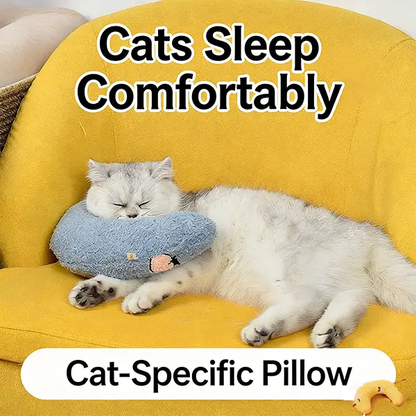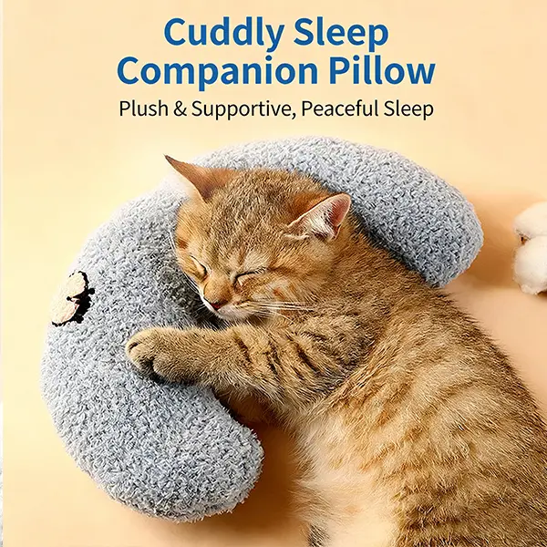 Cozy Cat & dog Sleeping Pillow, Cute U-Shaped Neck Support Pillow with Embroidery, Anti-Anxiety Pet Bed Cushion for Cats, Perfect for Crate, Couch & Travel U-Shaped Cat Sleeping Pillow - Soft & Supportive