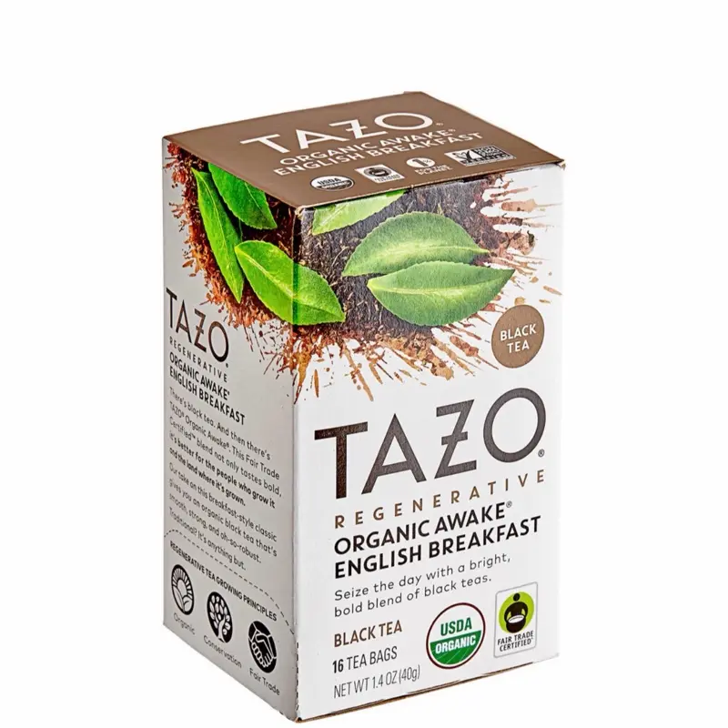 TAZO Organic Awake English Breakfast Black Tea with Caffeine 16 Bags USDA Organic Fair Trade Certified Snack