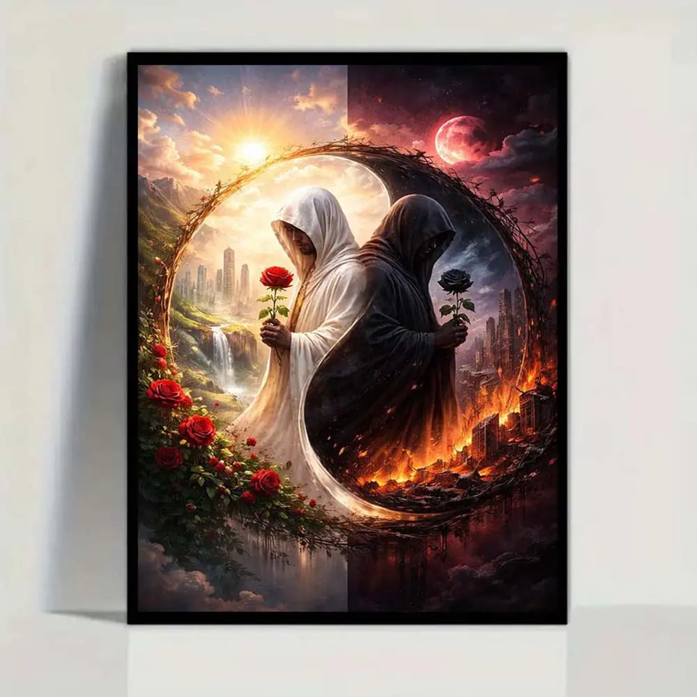 5D Diamond Painting Kit Full Round Drill Light, Dark, Rose DIY Mosaic Wall Art, Beginner Craft Kit (with Tools), Home Wall Decor Gift, Diamond Art Kit
