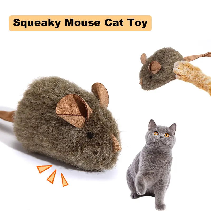Touch-activated squeakSoft plush mouse textureNatural catnip scent