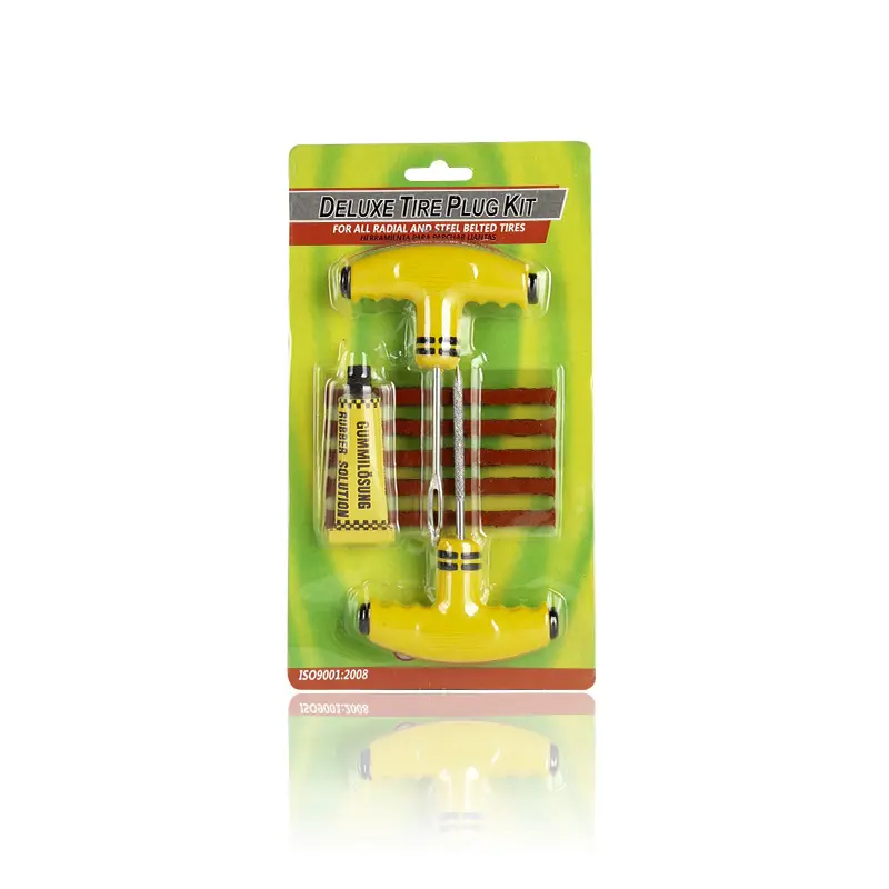 This all-in-one tire repair kit works for car motorcycle and electric vehicle vacuum tires, combining rubber strips fast glue and sealant for full puncture solutions