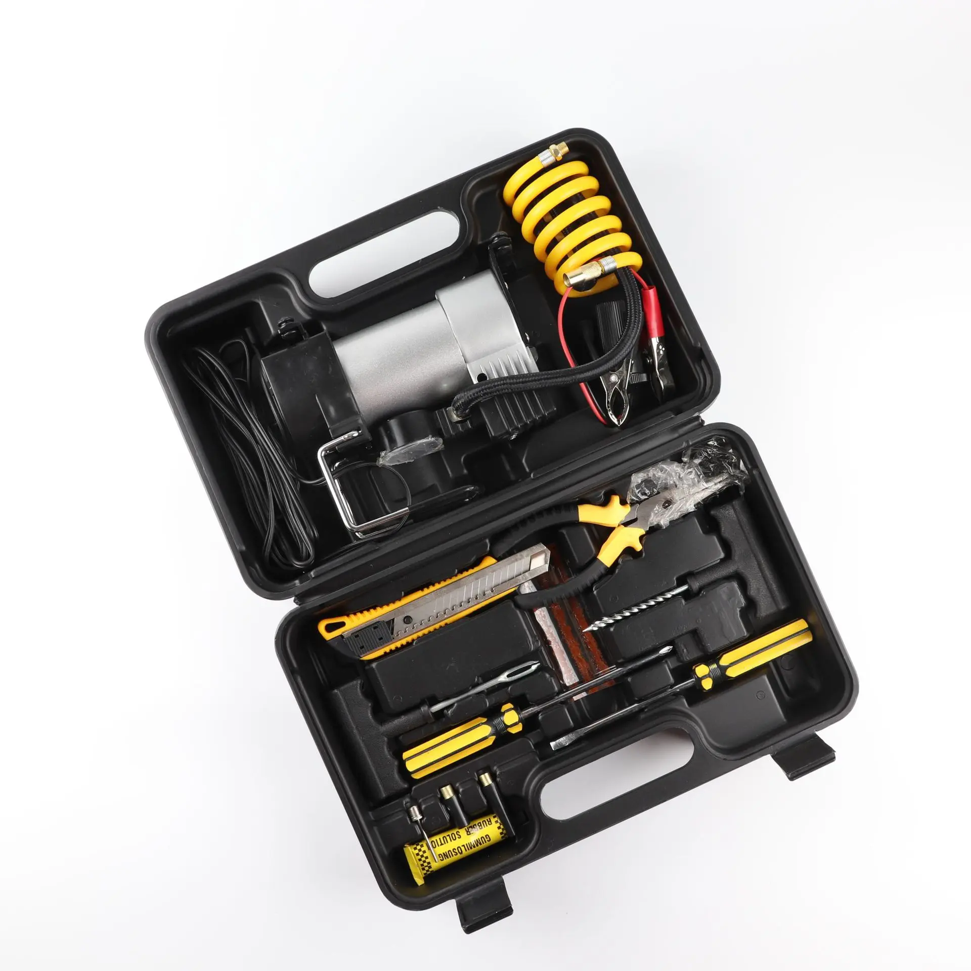 All tools are stored in a durable portable case, keeping everything organized and easy to carry in your car trunk for unexpected tire emergencies.
