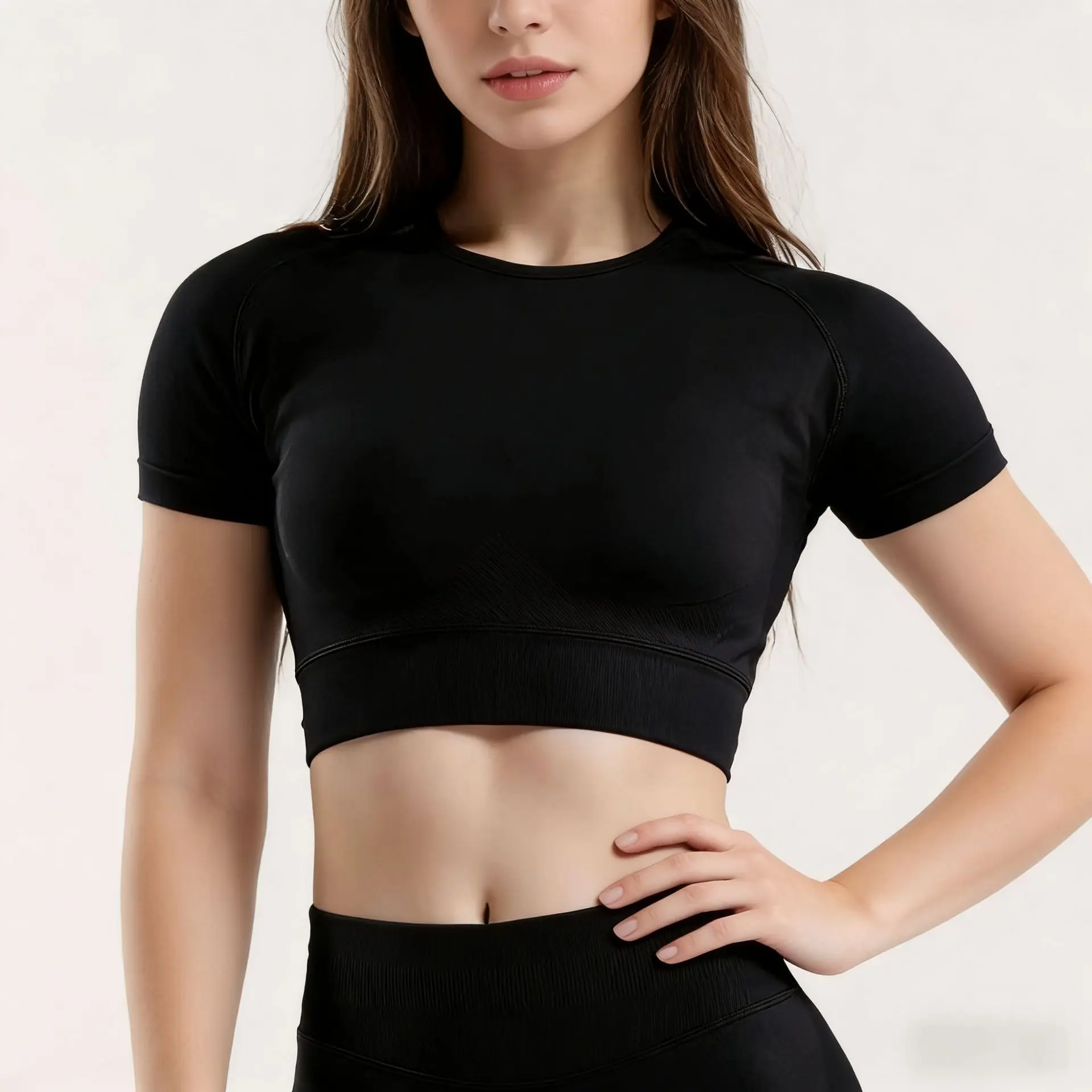 ·Crop Top: Short-sleeve crew neck design with a wide, ribbed underbust band for medium-impact support, keeping you secure during runs, lifts, and dynamic movements. The cropped length highlights your waistline for a sleek, gym-ready look.