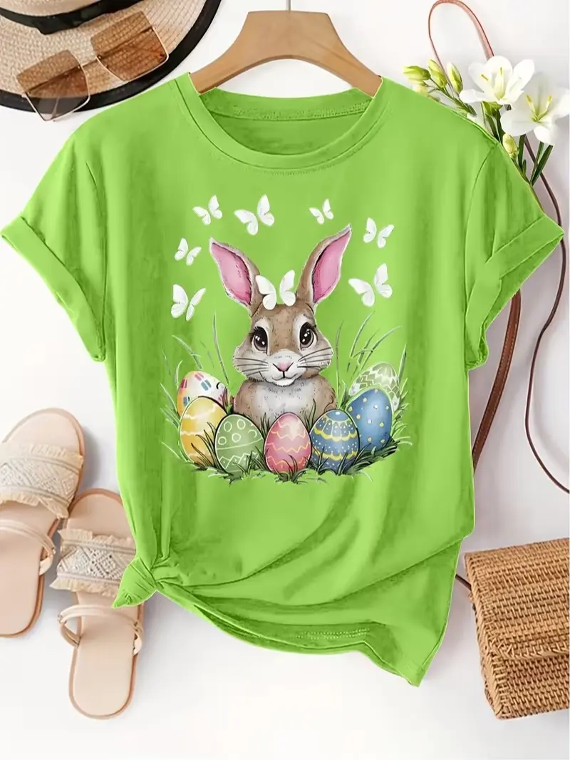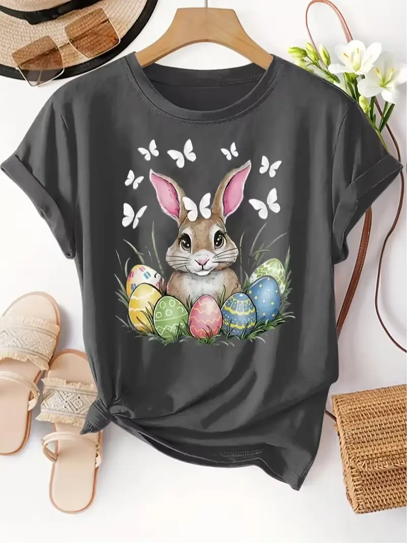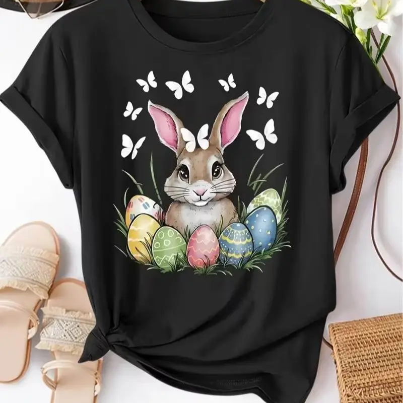 ·Vintage Pattern T-Shirt: Embrace the vintage charm with this T-shirt. The bunny and egg design brings a playful element to your look. Perfect for those who love a blend of classic and modern styles. Enjoy the glossy texture that enhances the overall appeal.