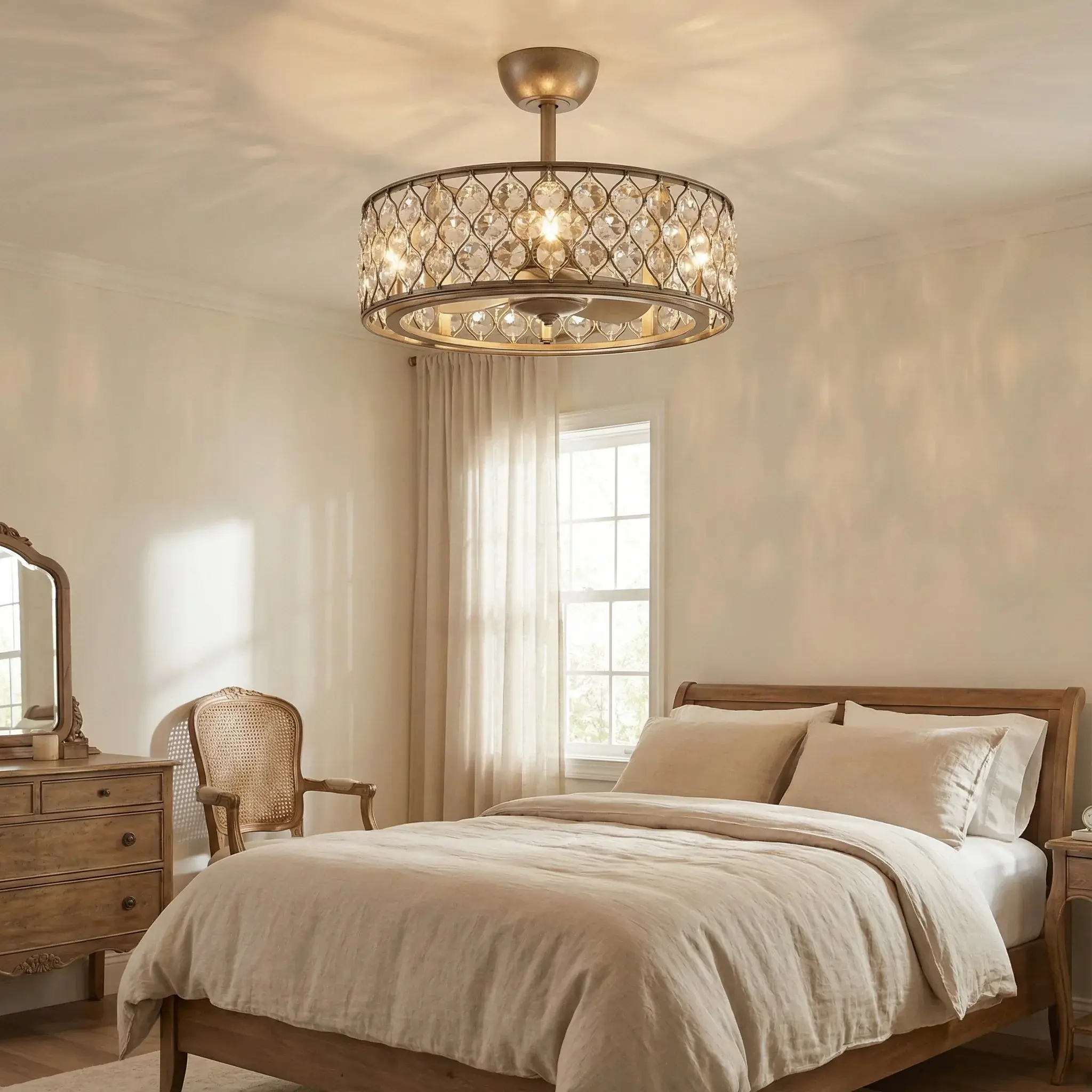 ·LIGHTING & CEILING FANS: Luxury ceiling fan and chandelier light 2 in 1, to meet your cooling and lighting needs. metal body gold finish with beautiful crystal decor for a luxurious touch. Perfect for bedroom, living room, dining room, kitchen, and etc.