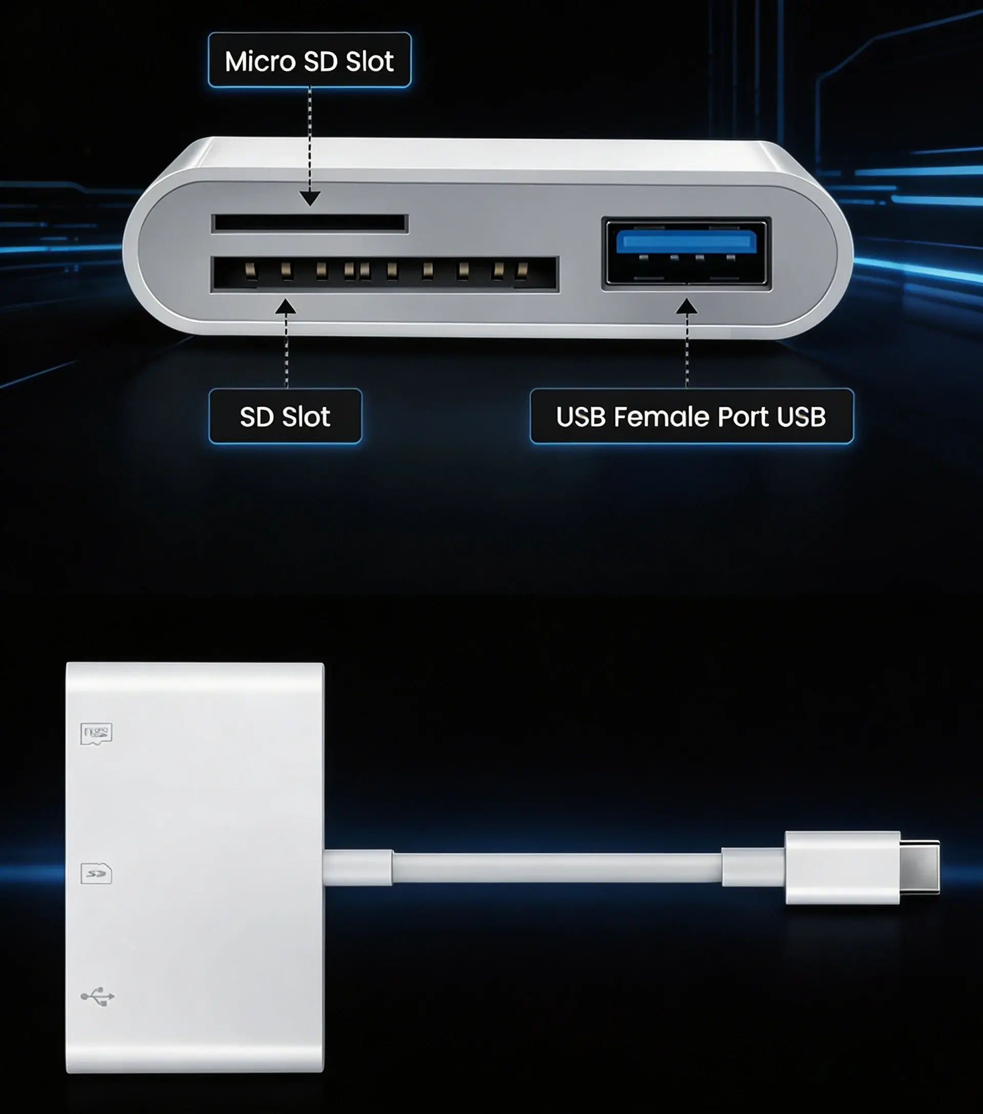 ️ Plug & Play – No app, no Wi-Fi, no driver needed. Just plug and start transferring photos/videos instantly.