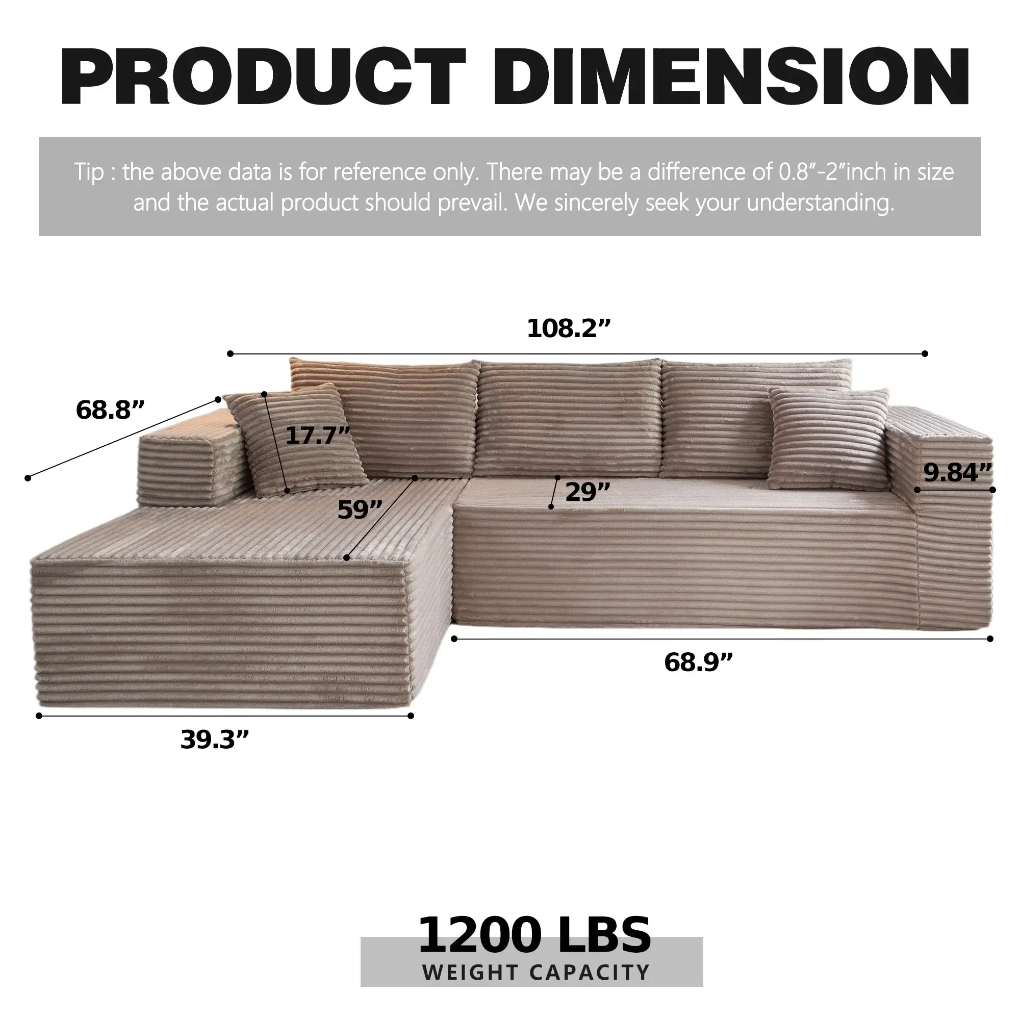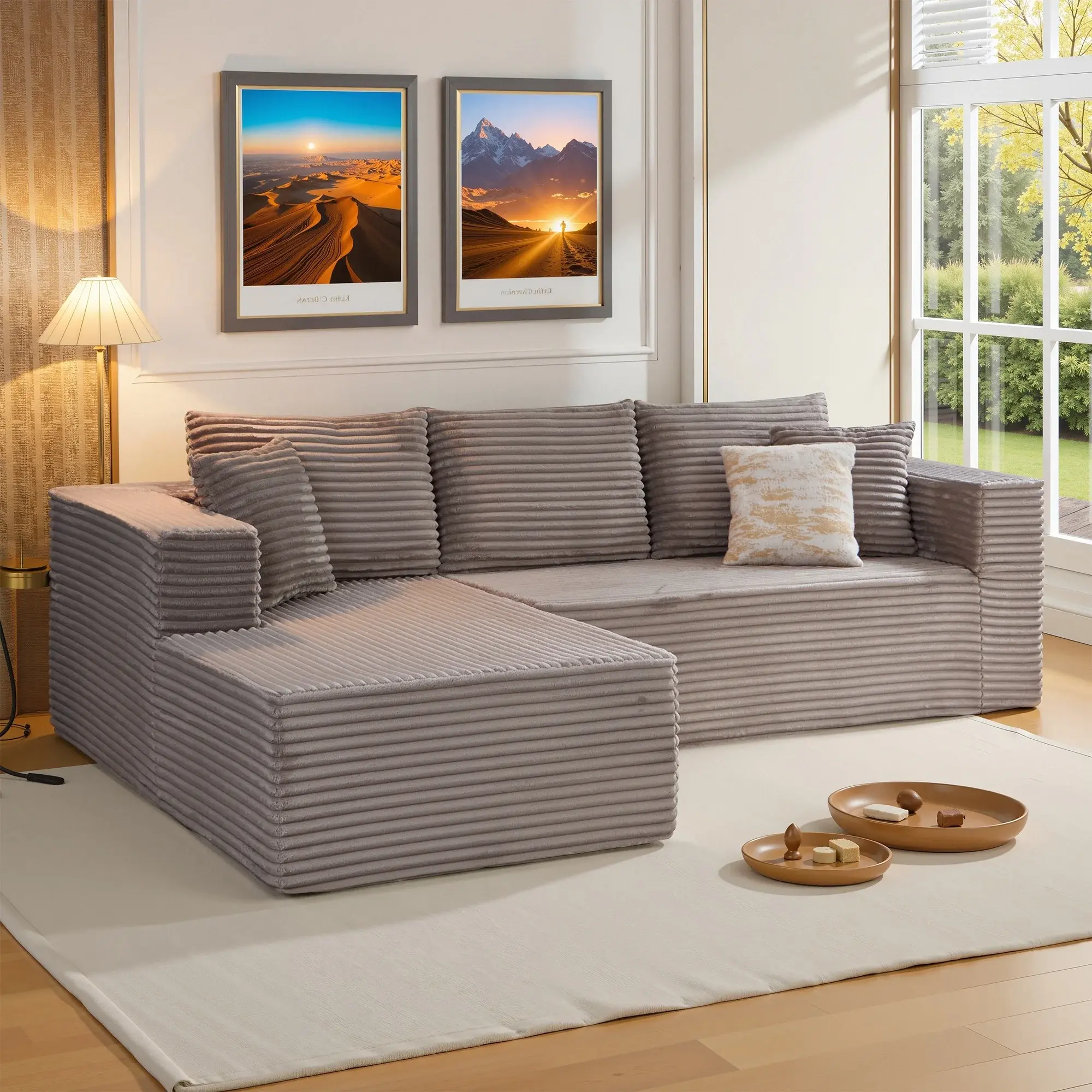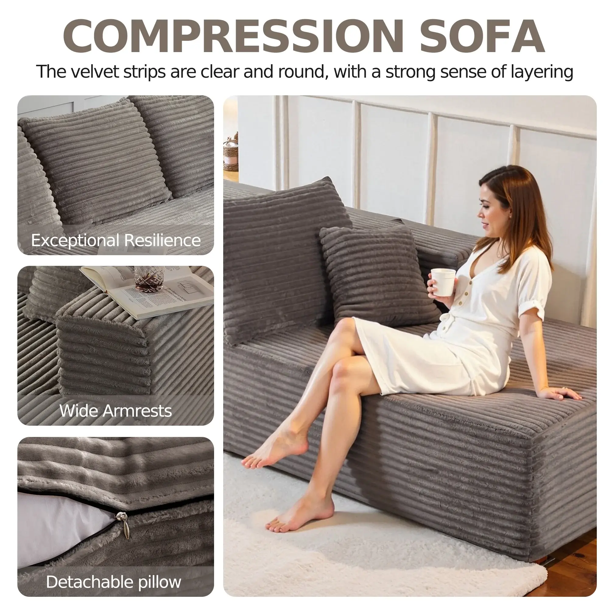 【No Tools, No Hassle Assembly】 Enjoy instant comfort with our truly tool-free setup! Your sofa arrives vacuum-packed for easy shipping. Simply unbox, place the modules, and gently pat the cushions. The high-density foam will fully expand to its plush, final shape within 48-72 hours—ready to use right away.