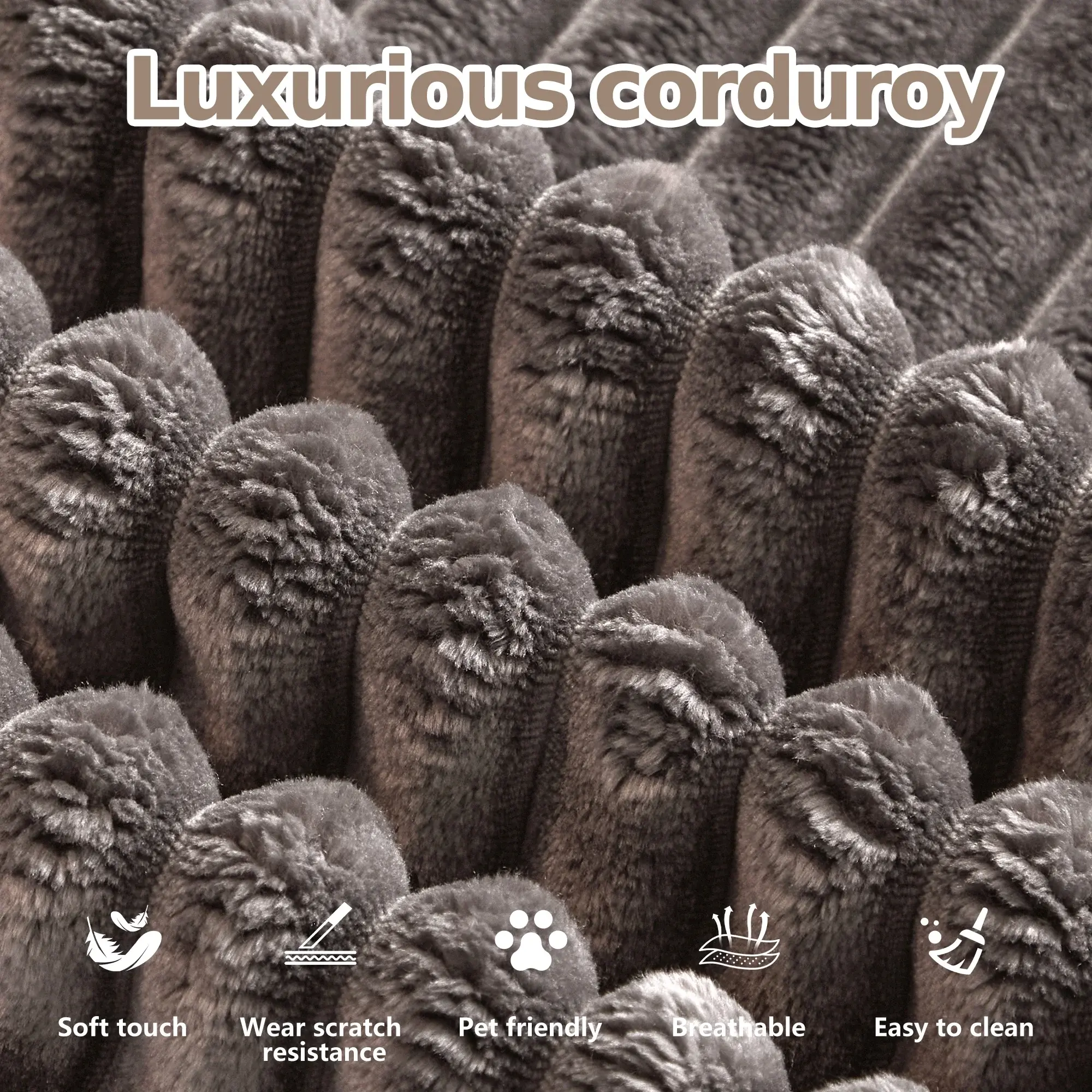 【Luxurious & Durable Corduroy Fabric】 Experience the soft, warm touch of premium corduroy upholstery. This upgraded fabric is not only wrinkle-resistant and breathable but also highly durable, making it ideal for homes with kids and pets. Its elegant texture adds a touch of sophistication to your home decor.