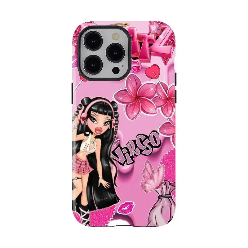 The B-B-bratz Y2k Spicy Girl Sparkling Phone Case features a sweet and cool style with pink and red lips. It is compatible with iPhone 17/16/15/14/13/12/11 Pro Max/Plus and Samsung Galaxy S23FE/22/23/24/25, making it the perfect gift for fans.