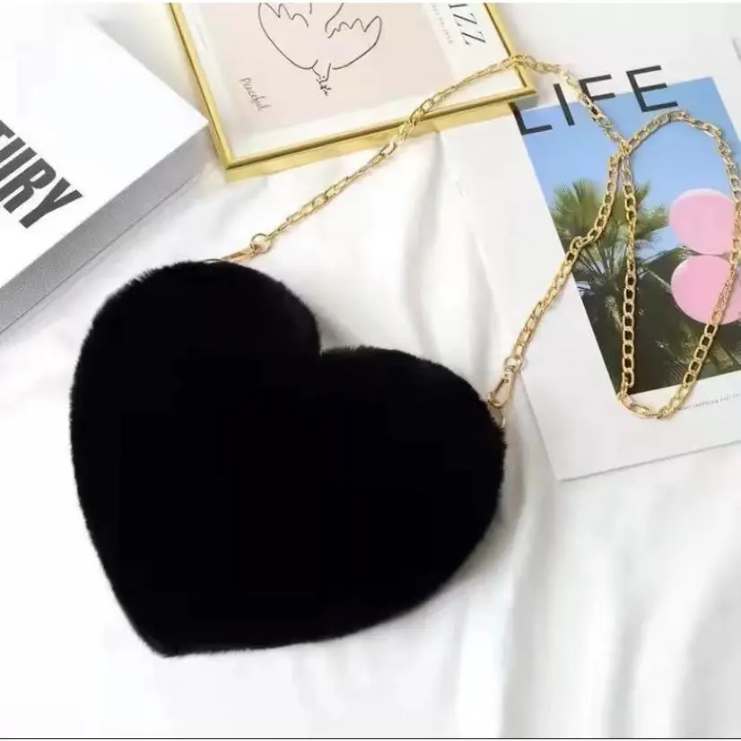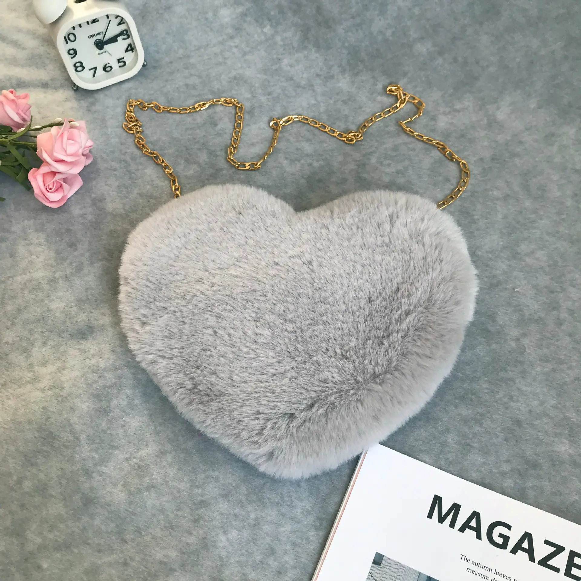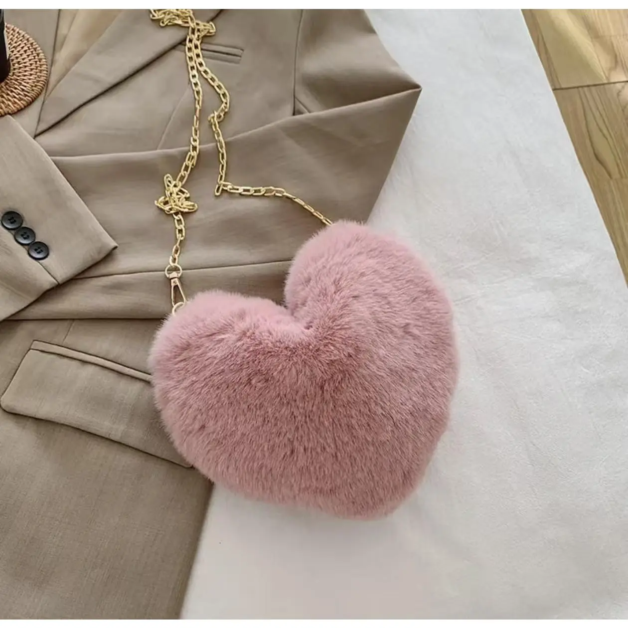 Y2K Heart Plush Bag, Cute Peach Heart Chain Crossbody Bag, Stylish Plush Shoulder Coin Purse for Women handbags luxury designer tote real