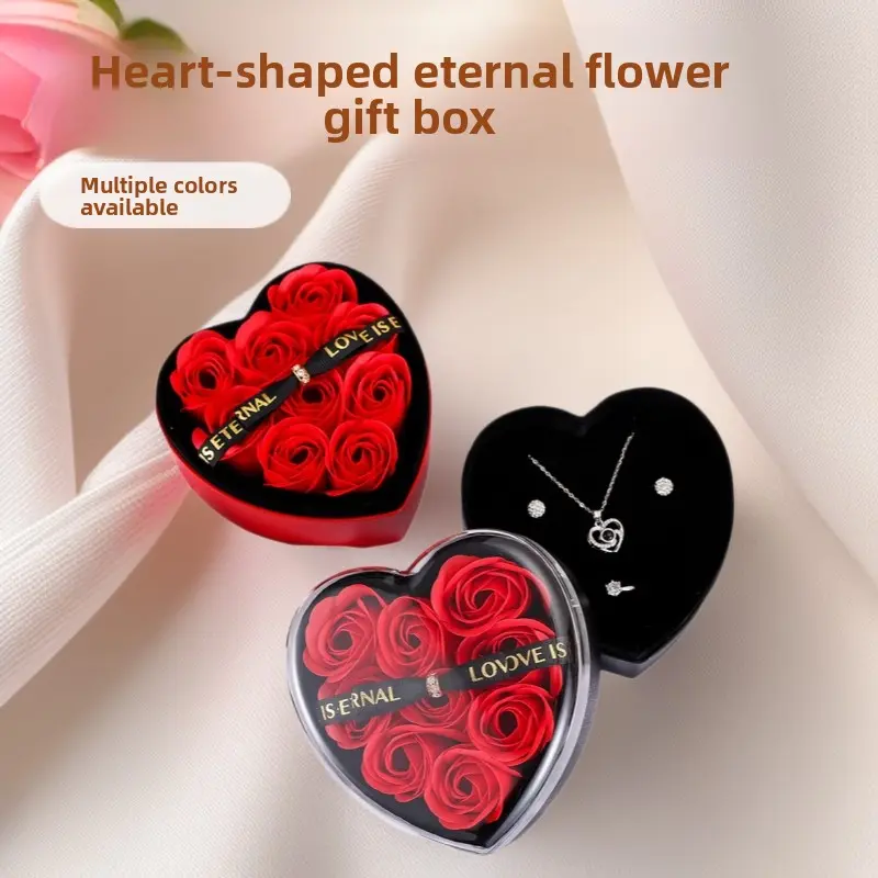 Heart-Shaped Rose Gift Box for Necklace Ring Earrings Jewelry, Preserved Flower Storage Case, Romantic Valentine's Day Gift Box for Girlfriend Birthday Anniversary teen girl mini gifts Mother's Day love gifts