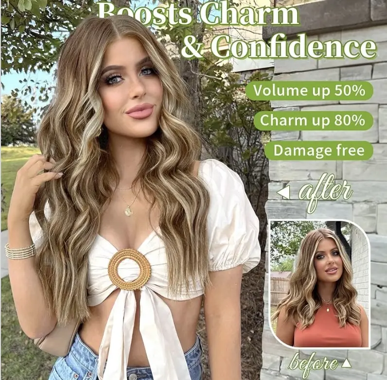30s Instant Glow Up: No glue, no beads, no damage. This Glueless one-piece design is the ultimate Lazy Girl Hack for thin or flat hair. Simply clip and go for a 200% volume boost in under half a minute.