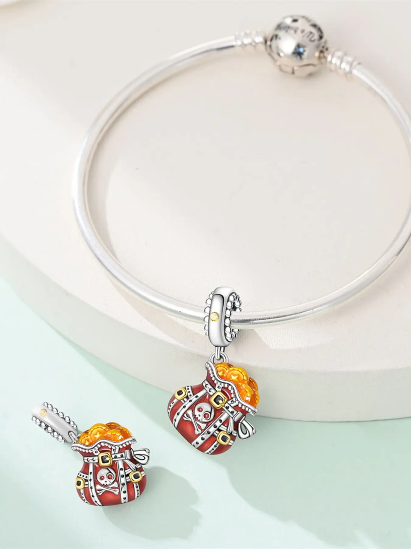 Pirate & Treasure Chest Charm, Single Piece Skull & Crossbone Design, Adventure Jewelry for Pandora Bracelet, Unique Accessory Gift Idea