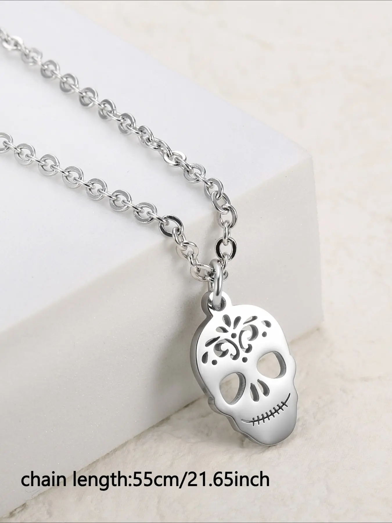 Stainless Steel Skull Pendant Necklace, Hip-hop Punk Style Accessory, Halloween Necklace
