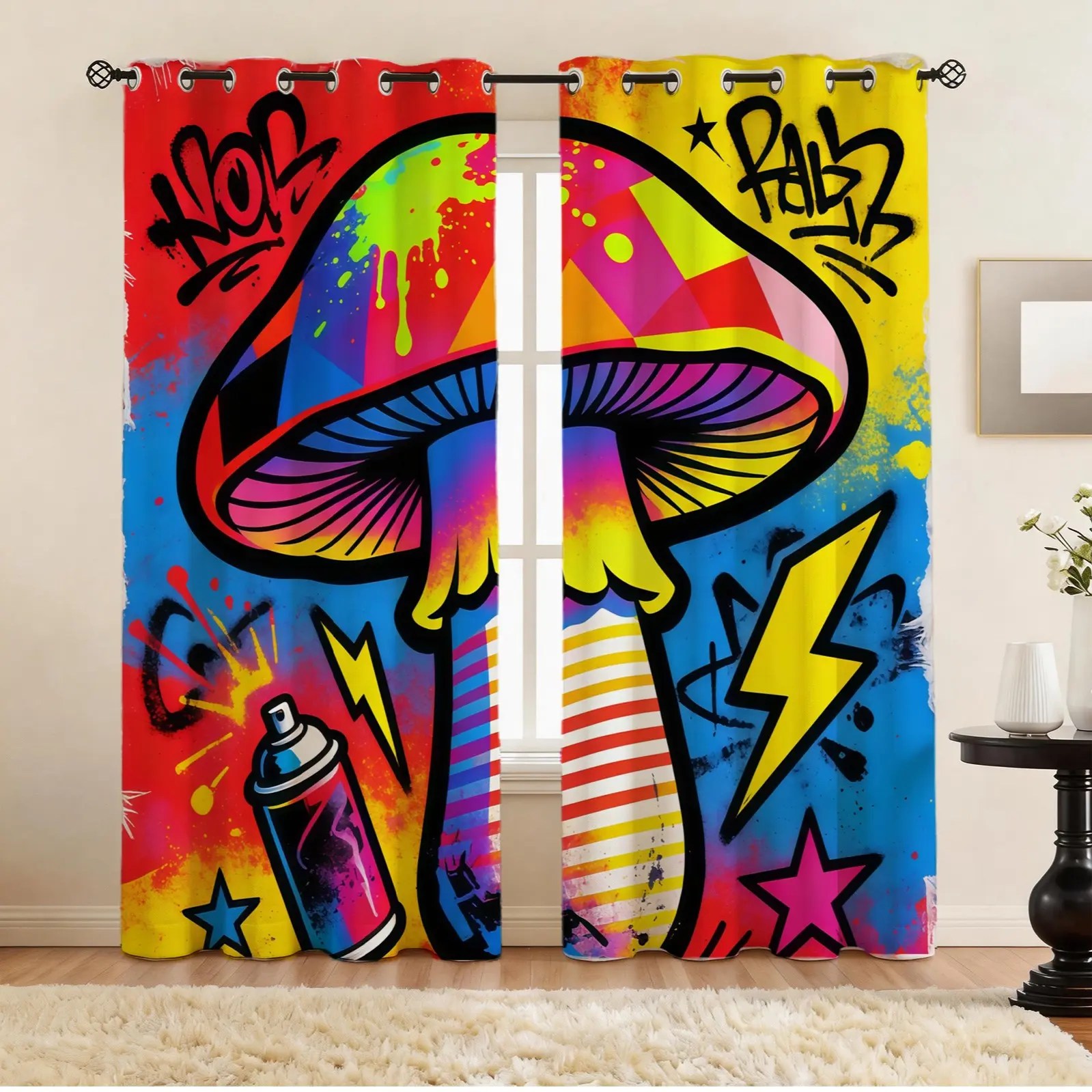 Lightning Mushroom Pattern Curtain Set, 2 Pieces, Ideal for Living Room, Balcony, Bedroom Windows, Perfect Home Decor for Seasons and Holidays