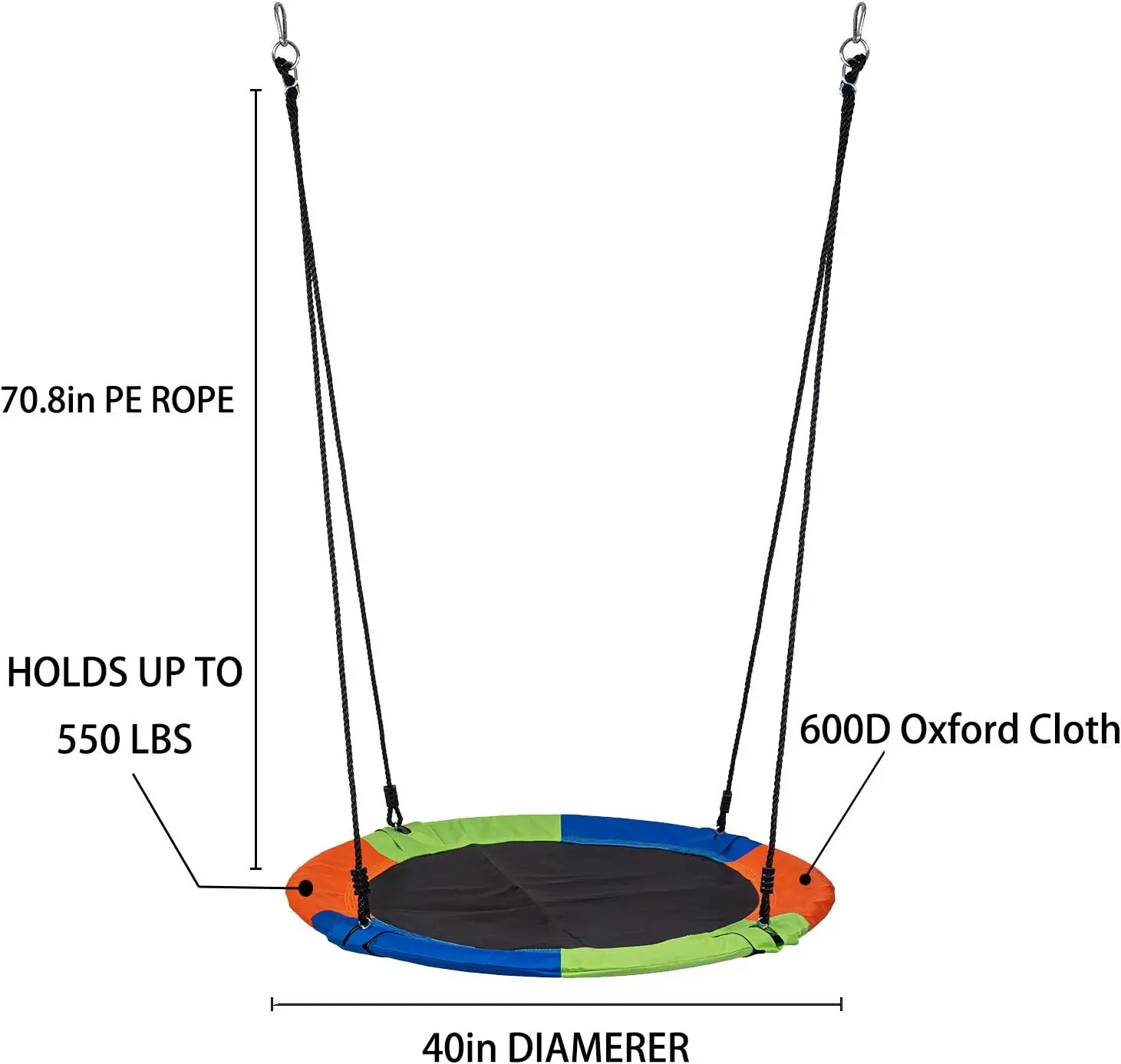 ·【Easy to Install】This saucer swing is very simple and fast to install or disassemble. It only takes a few minutes to assemble them together, hang them in your backyard, and let your children experience the fun of outdoor activities!