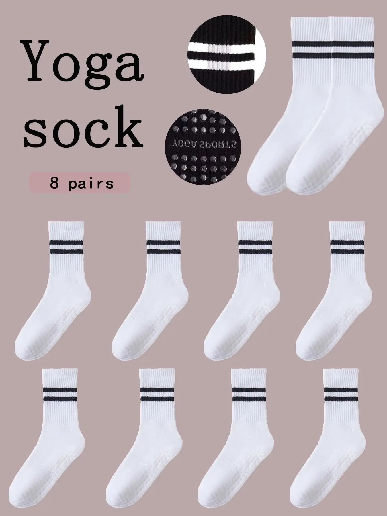8 Pairs Women Yoga Socks Skipping Rope Sports Socks Ballet Socks Pilates Socks Anti-slip Floor Socks Parallel Bars Mid-tube Socks