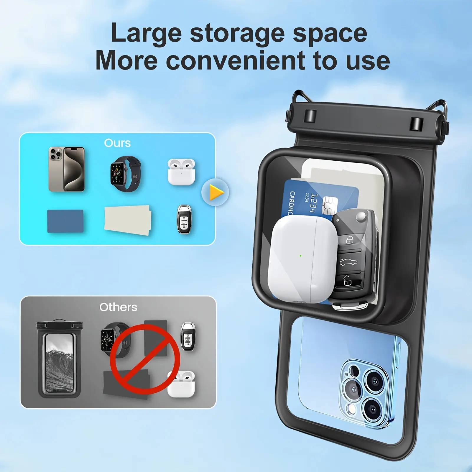 1pc Floating Phone Pouch with Storage Compartment And Adjustable Lanyard - a Large Capacity Dry Bag Suitable for iPhone, Samsung Motorola, Google, Xiaomi, Huawei,Crystal Clear, Sand-Proof, Perfect for Skiing, Swimming, Boating, And Kayaking Adventures